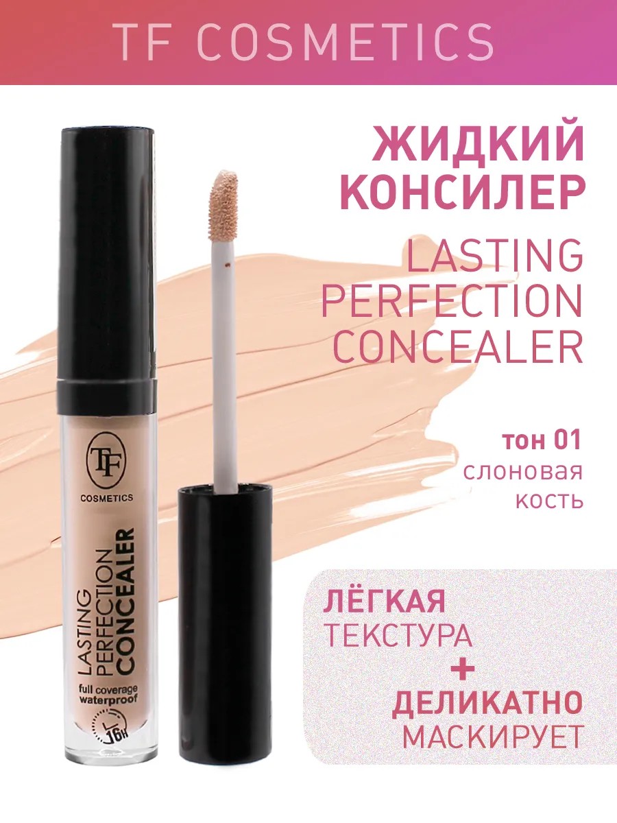 Жидкий консилер для лица LASTING PERFECTION, тон 01 - слоновая кость, маскирует темные круги под глазами, обладая деликатным сиянием, визуально уменьшает видимость мимических и глубоких морщин, скрывает мелкие несовершенства кожи. Выравнивает тон лица, минимизирует несовершенства, маскирует следы усталости.