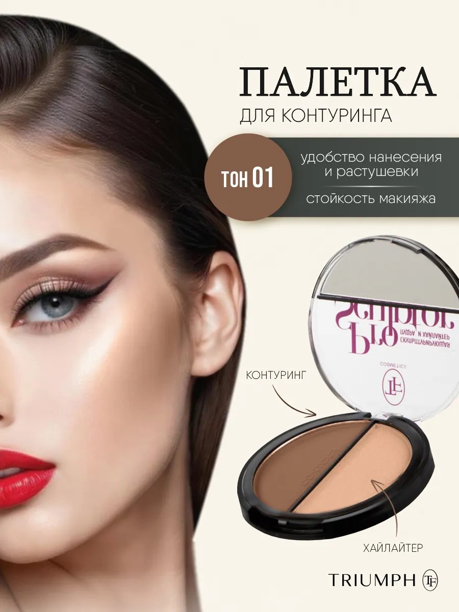 TF cosmetics Пудра скульптурирующая Pro Sculptor Powder, тон 01 Light Medium. Палетка для контуринга представляет собой инновационное многофункциональное средство, которое объединяет в себе два ключевых продукта для создания безупречного макияжа: хайлайтер и бронзер. Этот универсальный инструмент позволяет не только подчеркнуть естественные черты лица, но и скорректировать его овал, создавая безупречный скульптурный эффект.