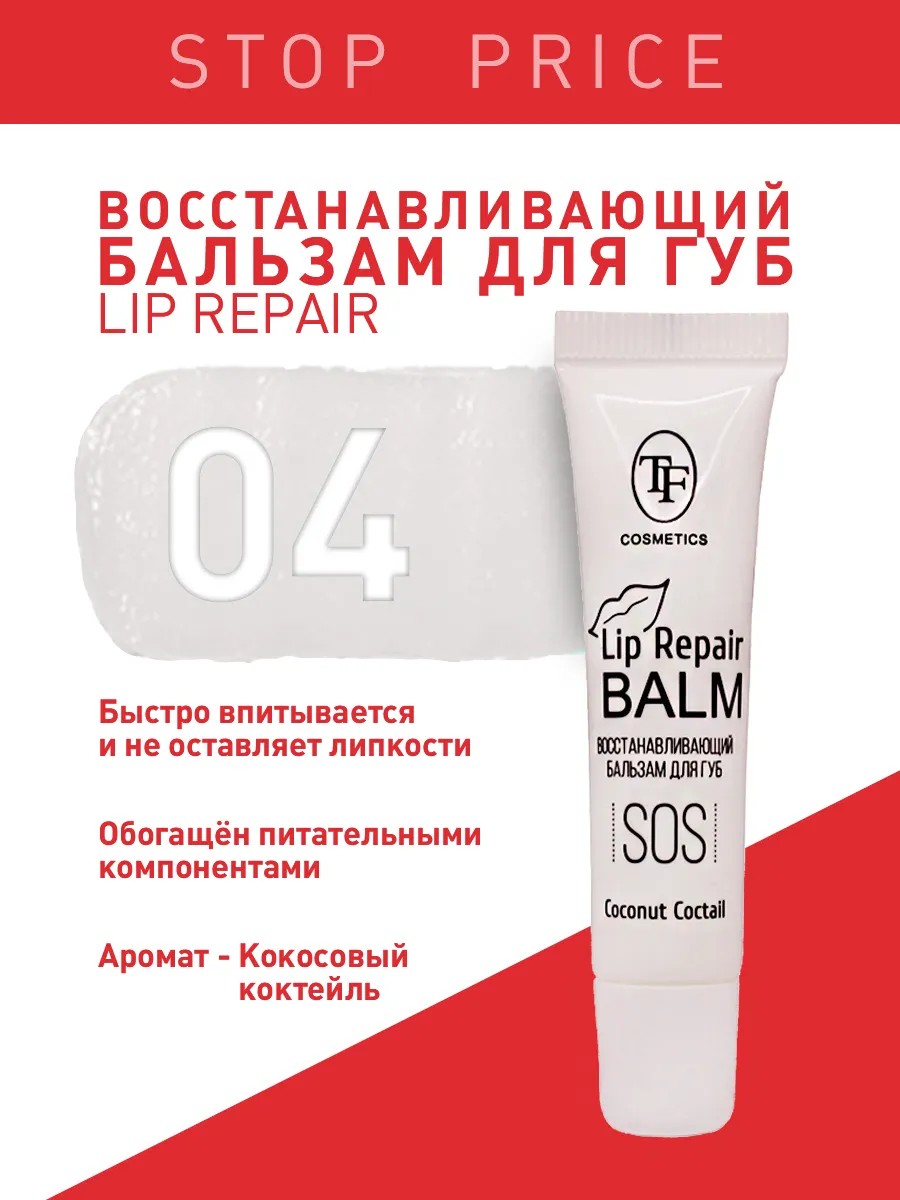 Восстанавливающий бальзам для губ TF COSMETICS в нежном оттенке COCONUT COCTAIL подарит вашим губам мягкость и комфорт. Формула бальзама, обогащенная питательными компонентами, интенсивно увлажняет и смягчает кожу губ, помогая восстановить их естественную бархатистость. Легкая текстура бальзама быстро впитывается, не оставляя липкости, и дарит губам приятный аромат кокоса. Наносите бальзам на губы по мере необходимости, чтобы наслаждаться мягкостью и ухоженностью в течение дня. Натуральные масла кокоса, авокадо и экстракт папайи глубоко питают и полноценно ухаживают за кожей губ. Приятный нежный аромат поднимает настроение и дарит дополнительные приятные ощущения