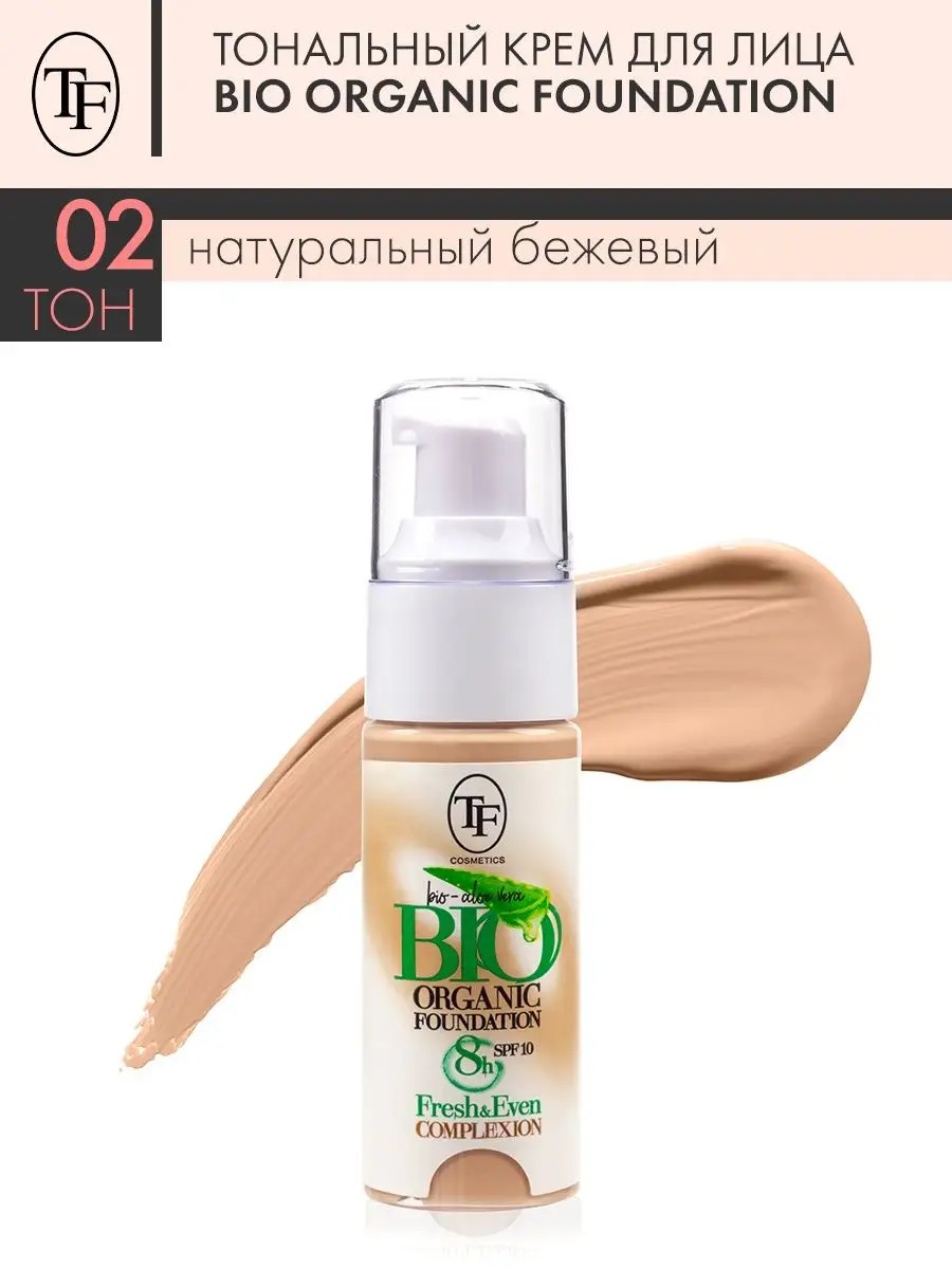 Тон 02 Натуральный бежевый. Фито-формула увлажняющего тонального крема сочетает новейшие цветокорректирующие пигменты и натуральные ухаживающие, питательные компоненты. Экстракт тимьяна обладает мощным антимикробным, успокаивающим, тонизирующим воздействием, усиливает кровообращение, улучшает цвет лица. Экстракт ромашки интенсивно питает, смягчает и увлажняет кожу, борется с пигментацией, разглаживает морщины. Алое вера увлажняет, питает, повышает эластичность и тонус кожи, стимулирует ее регенерацию. Цветокорректирующие свето-диффузные пигменты выравнивают тон лица, придавая ему сияющий и молодой вид, а микронизированные пудровые частицы матируют кожу, сохраняя ее увлажненность. Упаковка с дозатором, предохраняет крем от попадания бактерий и позволяет наиболее экономично его использовать. SPF-10 поможет защитить кожу от чрезмерного воздействия солнечных лучей.