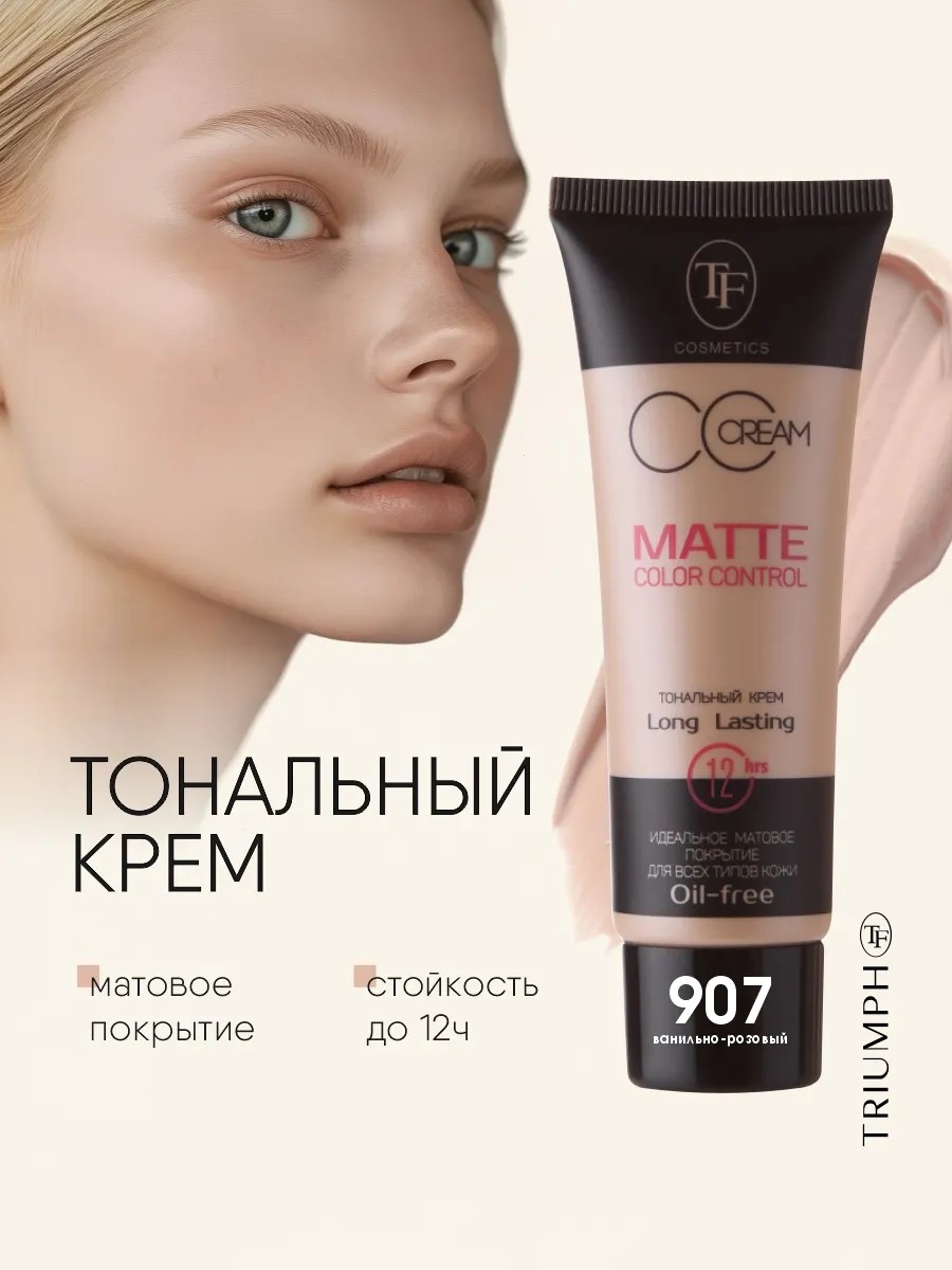 Матирующий тональный крем triumph для всех типов кожи с устойчивым эффектом. Флюидная текстура тональной основы для макияжа без масел дает возможность создания тонкого устойчивого макияжа с бархатным эффектом. Стойкий тональный крем эффективно скрывает и маскирует недостатки. Крем выравнивающий тон лица устойчив в течении 12 часов, с утра до самого вечера. Атласный матовый финиш тональника для макияжа лица, подарит невесомое ощущение и исключительный комфорт кожи. Тональное средство подходит для всех типов кожи, не подчёркивает шелушения и текстуру, надолго защищая лицо от жирного блеска (матирующий эффект). Тоналка триумф подходит для повседневного и профессионального макияжа.
