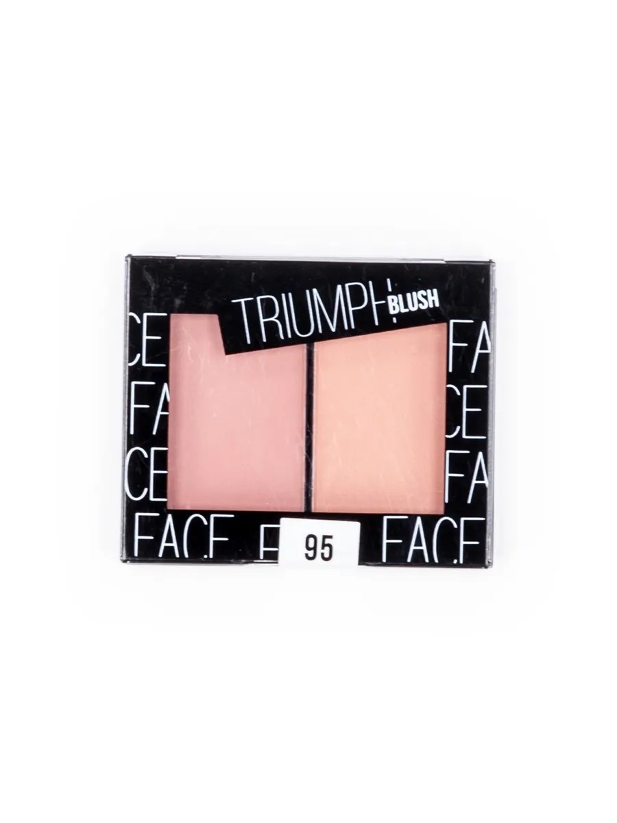 TRIUMPH / Triumph Cream Blush Shade 95 for All Skin Types 2-Color Palette 11.5g / Decorative Cosmetics. Triumph Blush 95 Cream Blush is a perfect choice for a light, radiant makeup look. The delicate texture feels effortless on the skin, yet creates a natural, rosy flush close to your natural skin tone. This contouring palette blends effortlessly and applies evenly. This creamy blush with a satin finish perfectly refreshes, making skin look smoother, younger, and more well-groomed. It contains moisturizing ingredients that nourish the skin and brighten the complexion. Triumph Blush 95 won't clog pores and ensures long-lasting makeup all day long. Its creamy formula will help contour your face, giving it a fresh, healthy look! decorative cosmetics / compact blush / face blush palette Ingredients: Mica, talc, magnesium stearate, silica, ethylhexyl palmitate, mineral oil, dimethicone, polybutene, methylparaben, propylparaben, may contain ci 77891, ci 77491, ci 77492, ci 77499, ci 15850, ci 45410, ci 77266.