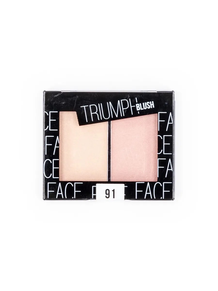 TRIUMPH / Триумф румяна для лица кремовые Blush тон 91 для любого типа кожи 2-х цветные персиковый беж, холодный розовый палетка 11.5г / декоративная косметика. Румяна для лица кремовые Triumph Blush 91 персиковый беж, холодный розовый - находка для легкого сияющего макияжа. Нежная текстура румян не ощущается на коже, при этом создает естественный розовый румянец по оттенку близкий к натуральному. Палетка для контуринга лица отлично тушуется и однородно наносится на кожу. Румяна кремовые с сатиновым финишем отлично освежают, с их помощью кожа выглядит более гладкой, молодой и ухоженной. В составе румян присутствуют увлажняющие компоненты, которые ухаживают за кожей, освежая цвет лица. Румяна Triumph Blush 91 не закупоривают поры и обеспечивают стойкий макияж в течение целого дня. Кремовая формула румян поможет смоделировать овал лица и придаст ему свежий и здоровый вид! декоративная косметика / румяна компактные / румяна для лица палетка Состав: Mica, talc, magnesium stearate, silica, ethylhexyl palmitate, mineral oil, dimethicone, polybutene, methylparaben, propylparaben, may containci 77891, ci 77491, ci 77492, ci 77499, ci 15850, ci 45410, ci 77266.