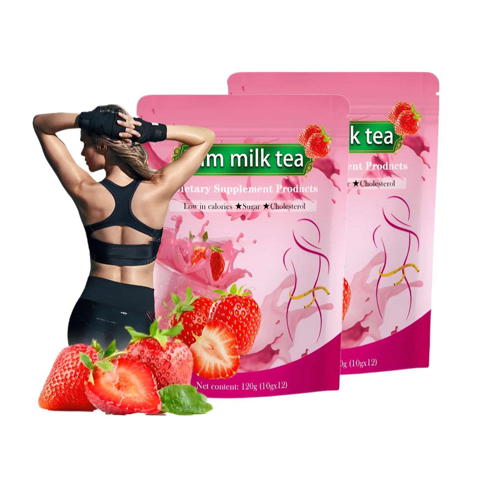Thé Au Lait Minceur À La Fraise - Boisson Naturelle For La Gestion Du Poids Et La Réduction De La Graisse Abdominale(2PC)