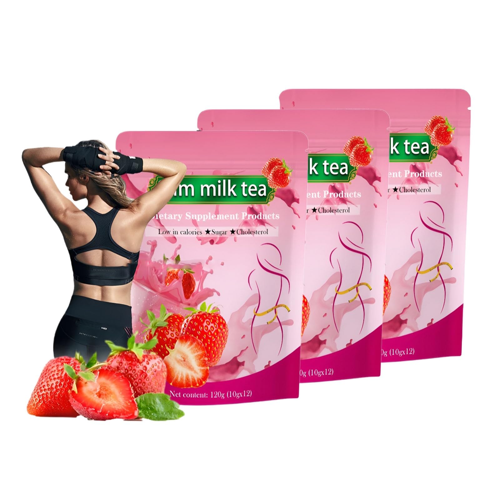 Thé Au Lait Minceur À La Fraise - Boisson Naturelle For La Gestion Du Poids Et La Réduction De La Graisse Abdominale(3PC)