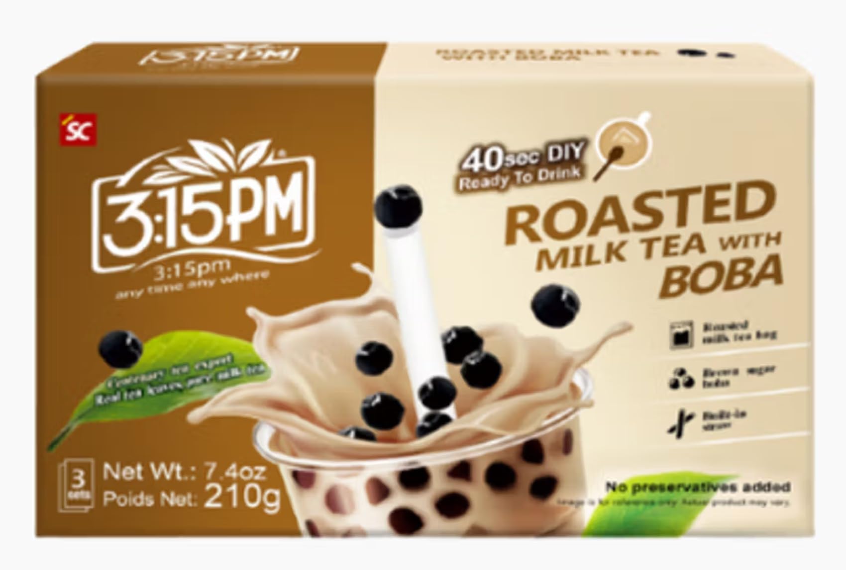 : The first innovative milk tea in a sachet and soft, non-acidic boba easy to prepare at home in 40 seconds real tea leaves no added preservatives. Ingredients: Brown sugar milk tea (cream, sugar, brown sugar, black tea, flavoring, Oolong tea), brown sugar boba.Description du produit Premier thé au lait innovant en sachet et boba moelleux non acidulé préparation maison facile en 40 secondes vraies feuilles de thé sans conservateur ajouté. Ingrédients Thé au lait à la cassonade (crème, sucre, cassonade, thé noir, arôme, thé Oolong), boba à la cassonade.Thé au Lait Torréfié avec Perles de Tapioca et à la Cassonade avec Perles de Tapioca 3:15PM 210g Boite (1 boite, Thé au Lait Torréfié) Thé au Lait Torréfié 210 g (Lot de 1)