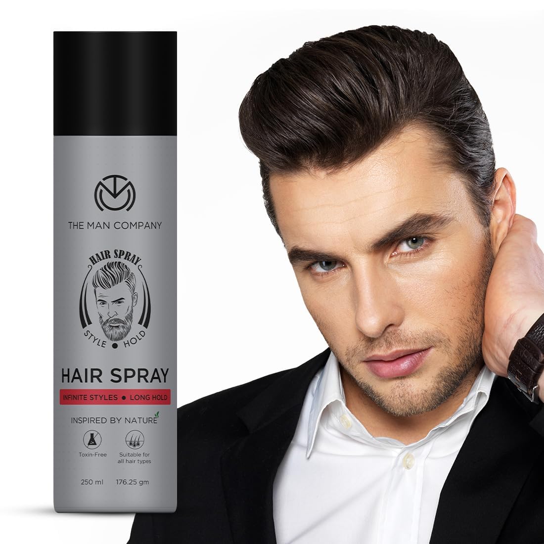 Th'e Ma'n Com'pany Hair Styling Spray For Men 250Ml | Strong Hold Long Lasting Matte Look & Instant Grip | Natural Shine Non-Stick Ultra Hard Black