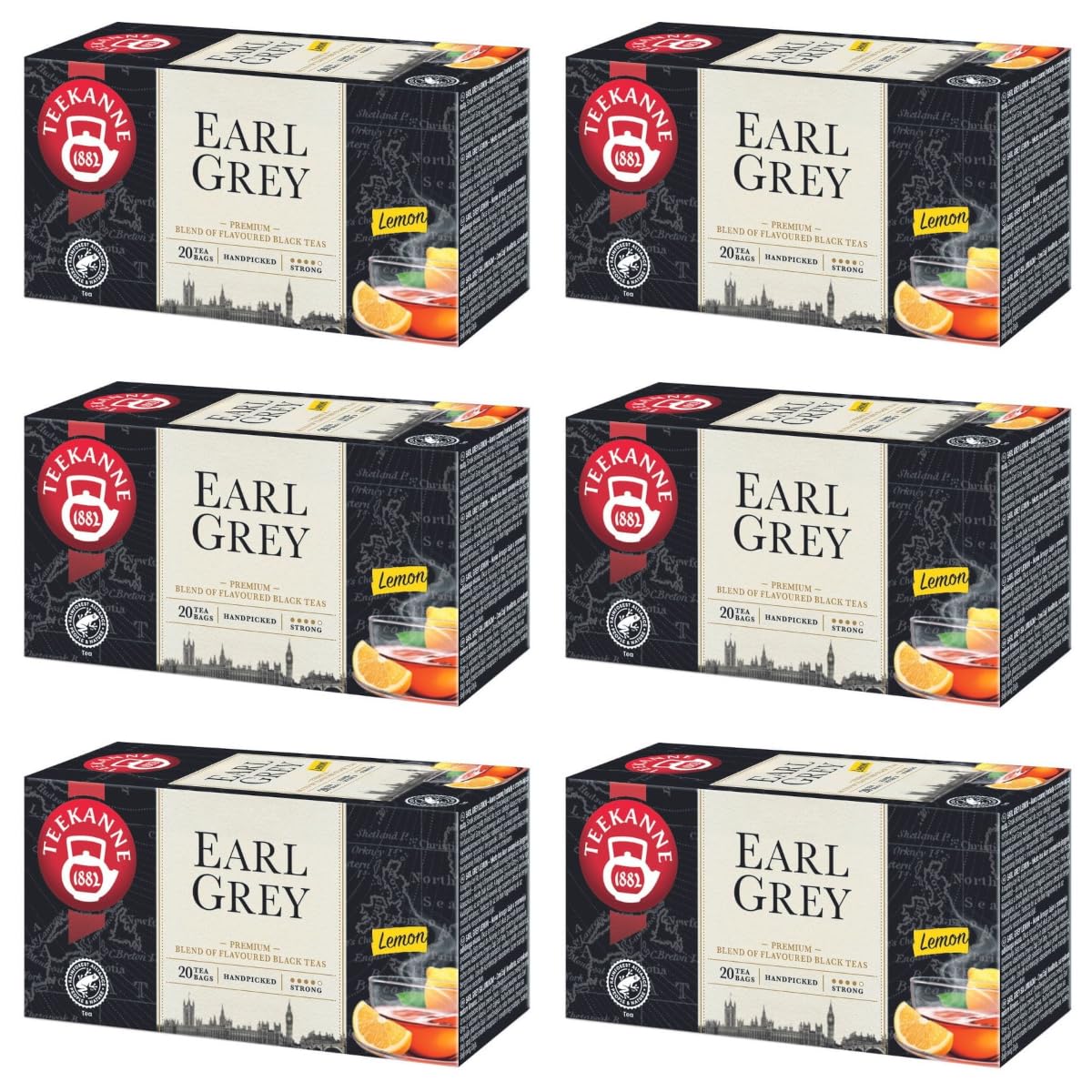 : Earl Grey Lemon Teapot is an exquisite black tea that combines traditional black tea with hints of bergamot and the freshness of lemon zest. Packaged in 6 boxes of 20 tea bags each, this tea promises to give you a uniquely refined feeling in every cup. Ingredients: Black tea, bergamot flavoring, lemon zest