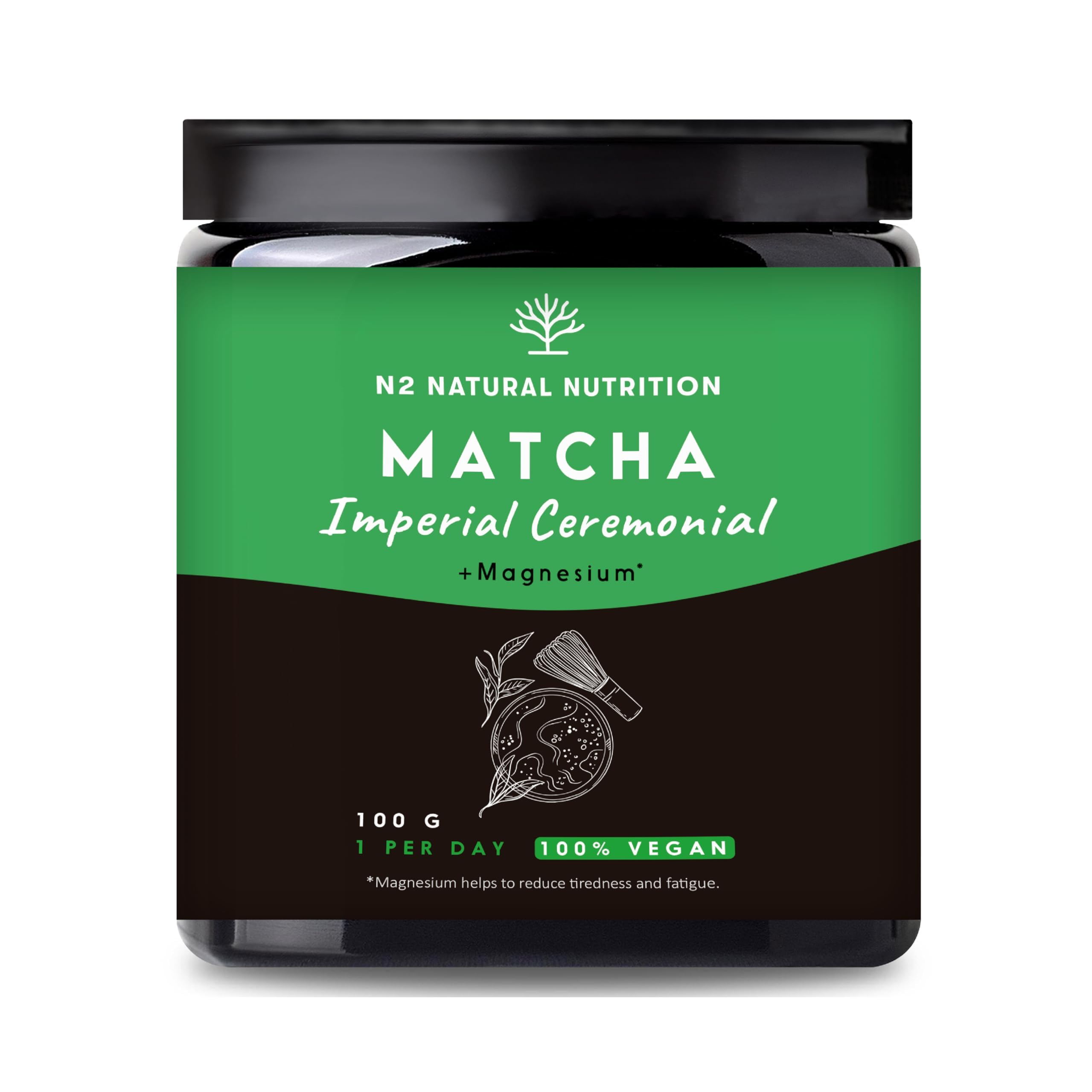 Thé Matcha Cérémonie Premium 100g per 100 jours. Thé Vert de Matcha Pure du Japon en Poudre avec Magnésium. Origine Japon. Qualité Supérieure. N2 Natural Nutrition