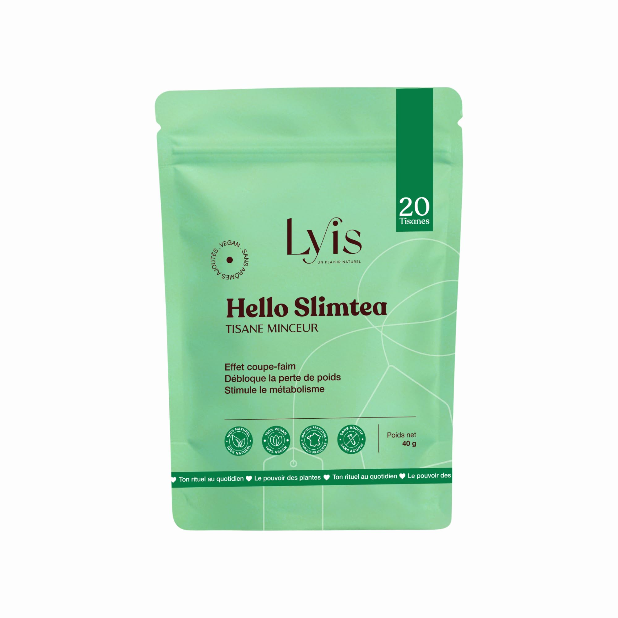 FRENCH BRAND: Lyis Paris promises an effective, natural, and feminine product, made in France with love and without compromising on quality. THE WEIGHT LOSS ALLY FOR ACTIVE WOMEN: Ideal for reducing bloating, inflammation, and regaining control without frustration. Perfect in preparation for summer or after a period of overindulgence. SIMPLE ENJOYABLE SLIMMING ROUTINE: No constraints: one cup a day, hot or cold, depending on your mood. Mild and natural taste, with no added flavorings. DETOX DRAINAGE TREATMENT – 1 INFUSION A DAY IS ENOUGH: With just one herbal tea a day, you can enjoy a complete 20-day treatment to eliminate toxins, combat water retention, and refine your figure. NATURAL FAT BURNER FOR A FLAT STOMACH: Formulated with plants with draining and fat-burning properties, this slimming herbal tea helps you activate weight loss and gently regain a flat stomach.MARQUE FRANÇAISE : Lyis Paris, c'est la promesse d'un produit efficace, naturel et féminin, fabriqué en France avec amour et sans compromis sur la qualité. L'ALLIÉE PERTE DE POIDS DES FEMMES ACTIVES : Idéale pour dégonfler, désenflammer, et reprendre le contrôle sans frustration. Parfaite en prévision de l'été ou après une période d'excès. ROUTINE MINCEUR SIMPLE AGRÉABLE : Pas de contrainte : une tasse par jour, chaude ou froide, selon ton moment bien-être. Goût doux et naturel, sans arômes ajoutés. CURE DÉTOX DRAINAGE – 1 INFUSION PAR JOUR SUFFIT : Avec seulement une tisane par jour, tu profites d'une cure complète de 20 jours pour éliminer les toxines, combattre la rétention d'eau et affiner ta silhouette. BRÛLEUR DE GRAISSE NATUREL POUR VENTRE PLAT : Formulée avec des plantes aux propriétés drainantes et brûle-graisse, cette tisane minceur t'aide à activer la perte de poids et retrouver un ventre plat en douceur.Thé Minceur Pour Perte de Poids Rapide I Detox Minceur Puissant et Rapide I Maigrir Rapidement Efficacement I Boisson Minceur Perte de Poids I Produit Minceur Rapide Efficace Fort I LYIS I