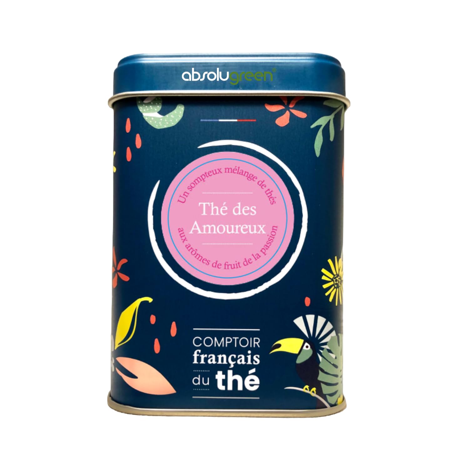 Thé Mixte Thé des Amoureux – Comptoir Français du Thé – Boîte Métal 80g – Mélange aux Notes Fruitées et Gourmandes – Infusion Douce et Passionnée Fruits Exotiques, Floral