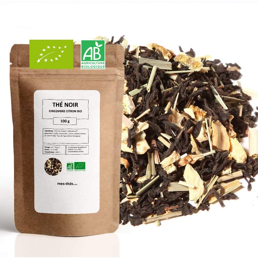 Th Noir Bio aromatis Gingembre Citron - 100g (40 tasses) - Th en vrac 100% Agriculture Biologique - Mes-Th s