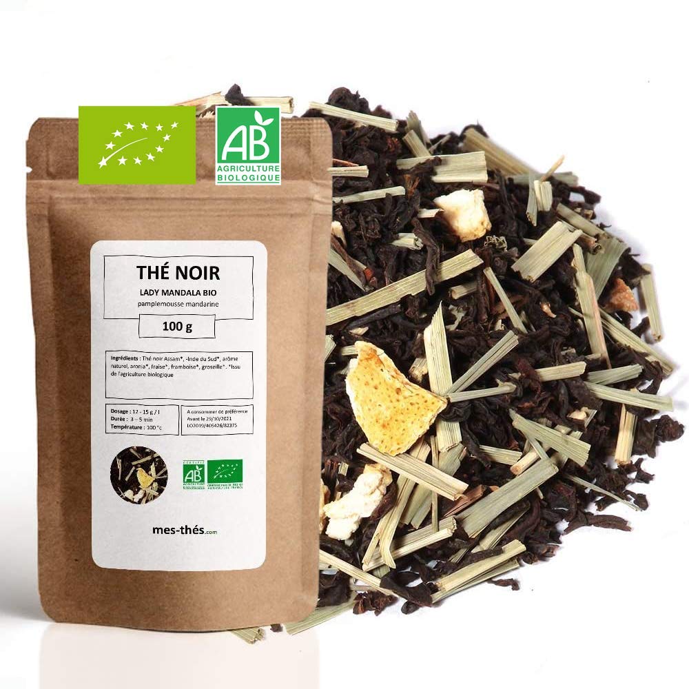 ? CERTIFIED ORGANIC AND ECO-FRIENDLY: Certified FR-BIO-01, this Mes-Thés organic black tea respects the environment and is part of a sustainable approach. It's an ideal choice for those looking for a product that is both delicious and kind to the planet. Mes-Thés is a French brand. DIRECTIONS FOR USE: For a perfect infusion, use 12 to 15 g of black tea per liter of water. Let it steep for 2 to 3 minutes at a temperature of 70 to 80 C to fully release its flavors and preserve its benefits. LOOSE LEAF TEA FOR A PERFECT BREW: Opt for this organic loose leaf black tea, ideal for fully releg its flavors and aromas. Prepare each cup according to your preferences, adjusting the amount and steeping time to your taste. AN ALLY FOR YOUR WELL-BEING: Grapefruit Mandarin black tea is known for its antioxidant properties and health benefits. Naturally rich in theine, it offers an invigorating effect and a feeling of vitality. Perfect as a hot or iced infusion, it accompanies your moments of relaxation or concentration. HIGH-QUALITY ORGANIC BLACK TEA: Discover this organic Grapefruit Mandarin black tea, made with organically grown grapes. Carefully crafted by Mes-Thés to offer an infusion rich in flavor and natural benefits. An ideal beverage for a moment of relaxation and revitalization every day.? CERTIFIÉ BIO ET ÉCO-RESPONSABLE : Certifié FR-BIO-01, ce thé noir bio Mes-Thés respecte l'environnement et s'inscrit dans une démarche durable. C'est un choix idéal pour ceux qui recherchent un produit à la fois délicieux et respectueux de la planète. Mes-Thés est une marque Française. CONSEILS D'UTILISATION : Pour une infusion parfaite, utilisez 12 à 15 g de thé noir par litre d'eau. Laissez infuser 2 à 3 minutes à une température de 70 à 80 C pour révéler toutes ses saveurs et conserver ses bienfaits. THÉ EN VRAC POUR UNE INFUSION PARFAITE : Optez pour ce thé noir bio en vrac, idéal pour libérer pleinement ses saveurs et ses arômes. Préparez chaque tasse selon vos envies, en adaptant dosage et temps d'infusion à votre goût. UN ALLIÉ POUR VOTRE BIEN-ÊTRE : Le thé noir Pamplemousse Mandarine est reconnu pour ses propriétés antioxydantes et ses bienfaits pour la santé. Naturellement riche en théine, il offre un effet tonifiant et une sensation de vitalité. Parfait en infusion chaude ou glacée, il accompagne vos moments de détente ou de concentration. THÉ NOIR BIO DE HAUTE QUALITÉ : Découvrez ce thé noir bio Pamplemousse Mandarine , issu de l'agriculture biologique. Soigneusement élaboré par Mes-Thés pour offrir une infusion riche en saveurs et en bienfaits naturels. Une boisson idéale pour un moment de détente et de revitalisation au quotidien.Thé Noir Bio Pamplemousse Mandarine - 100g (40 tasses) - Thé en vrac 100 Agriculture Biologique - Mes-Thés