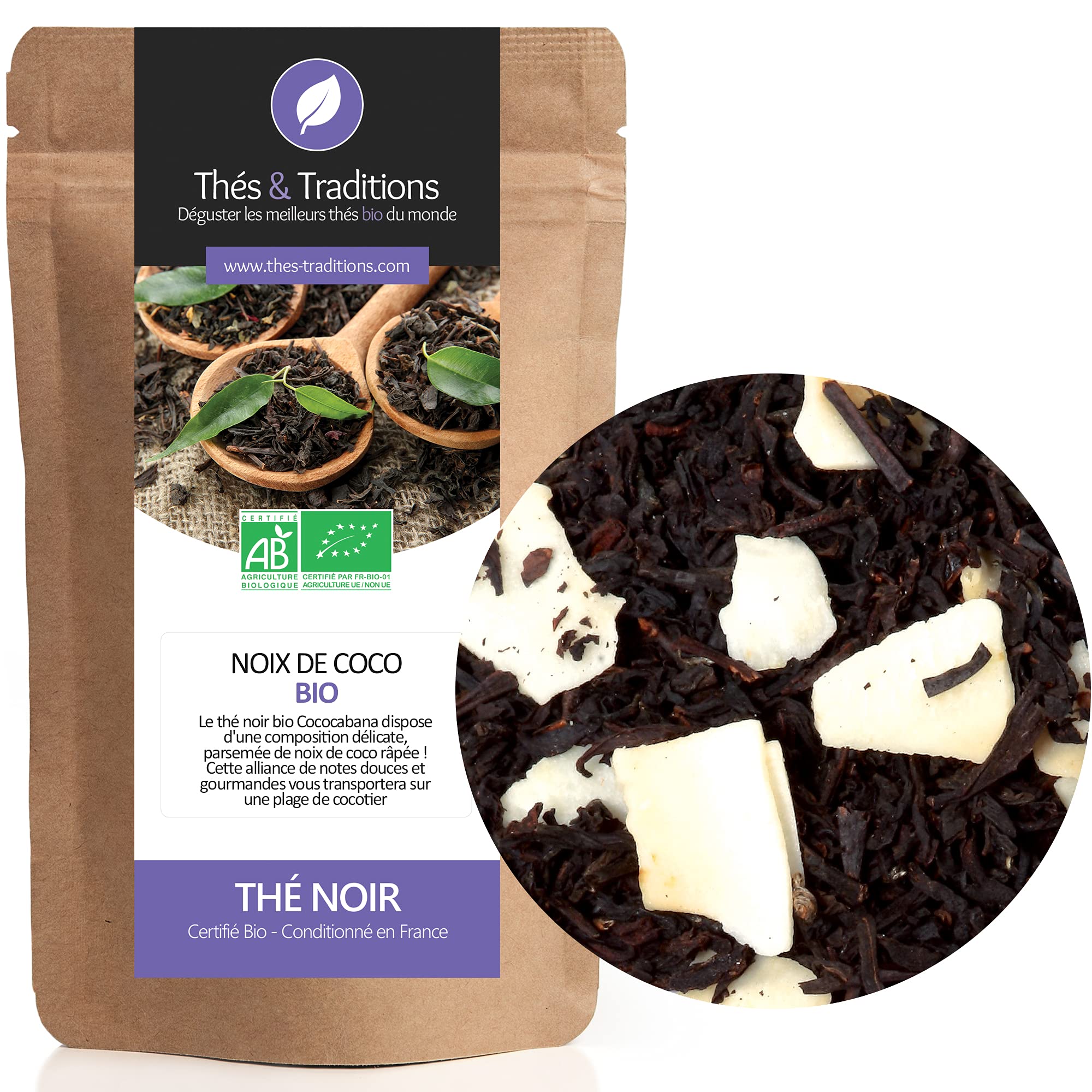 Thé noir Noix de coco BIO Sachet 100g vrac ? Certifié Agriculture biologique ?