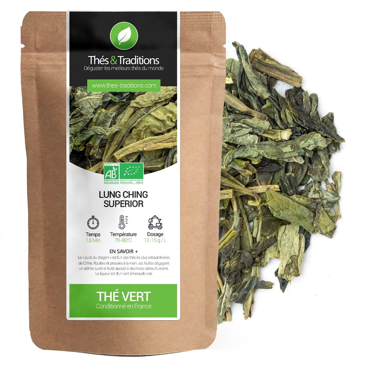 Th s & Traditions Organic Lung Ching Superior Green Tea | 100g Loose Leaf Bag | Certified Organic Farming
