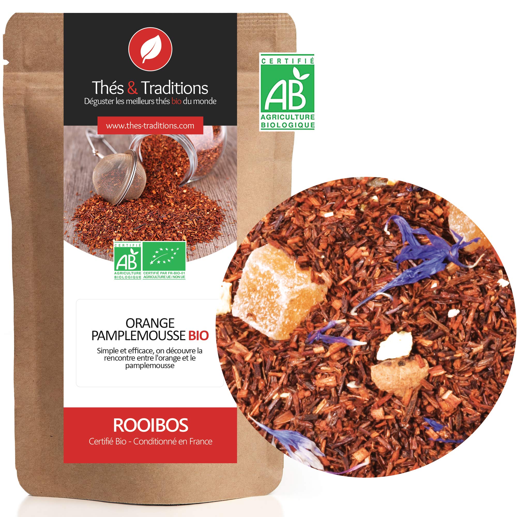 Th s & Traditions Organic Rooibos Orange Grapefruit | 100g Loose Leaf Bag | Certified Organic Agriculture