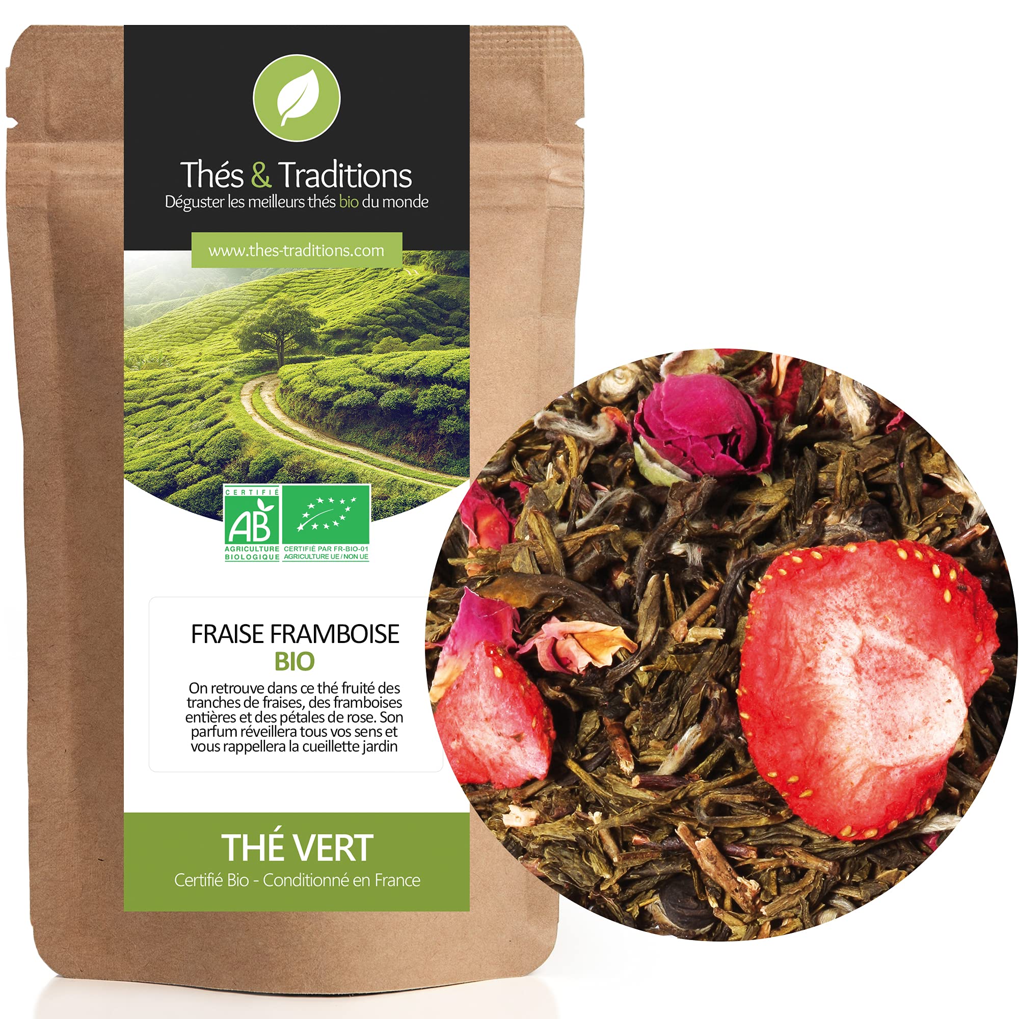 Thé Vert Bio Fraise Framboise Sachet 100g vrac ? Certifié Agriculture biologique ?