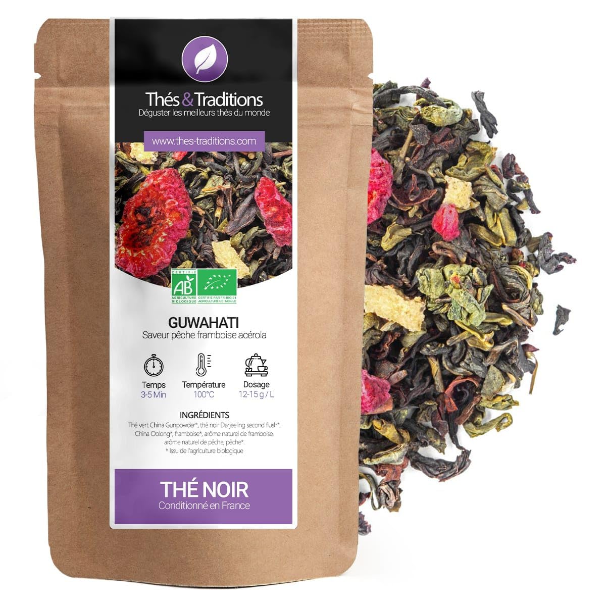 Thés Traditions - Noir biologique thé framboise acérola pêche - Guwahati 100g