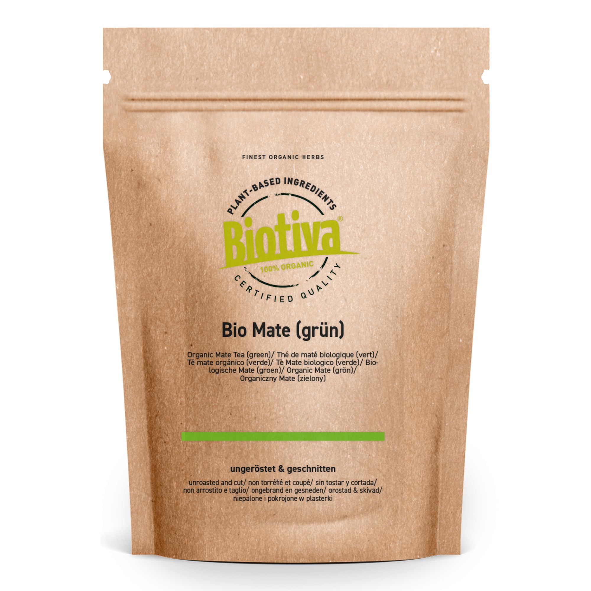 FOR YOUR SATISFACTION: As a family business, we want your long-term satisfaction. However, if you are not satisfied, have a question, or need assistance, please do not hesitate to contact us. We will find a solution together. 35 YEARS OF ORGANIC EXPERTISE. MADE IN GERMANY. With over 35 years of experience in organic farming, we know the best growing areas and the most reliable growers and producers. Each product is then inspected and packaged in our own facility. PEOPLE AND THE ENVIRONMENT ARE IMPORTANT TO US. The product is vegan, lactose-free, gluten-free, soy-free, and contains no added sugars. No additives. Zip-lock packaging. PREMIUM QUALITY ACTIVE INGREDIENTS: Our yerba mate tea comes from sustainable organic farming, and its processing preserves the active substances. Yerba mate tea has a taste that is simultaneously sweet, bitter, fresh, and earthy. Organic Mate Tea contains 100 pure dried mate leaves from Brazilian organic farming. We use no separating agents, fillers, or flow agents. Just pure nature.POUR TA SATISFACTION : en tant qu'entreprise familiale, nous voulons te satisfaire à long terme. Si toutefois tu n'es pas satisfait, si tu as une question ou si tu as besoin d'aide, n'hésite pas à nous contacter. Nous chercherons ensemble une solution. 35 ANS D'EXPERTISE BIO. MADE IN GERMANY. Avec plus de 35 ans d'expérience dans le domaine de l'agriculture biologique, nous connaissons les meilleures zones de culture et les cultivateurs et producteurs les plus fiables. Chaque produit est ensuite contrôlé et conditionné dans notre manufacture. L'HOMME ET L'ENVIRONNEMENT SONT IMPORTANTS POUR NOUS. Le produit est végan, sans lactose, sans gluten, sans soja et sans sucres ajoutés. Sans additifs. Emballage avec fermeture zip. DES PRINCIPES ACTIFS DE QUALITÉ SUPÉRIEURE : Le thé maté est issu de l'agriculture biologique durable et sa transformation préserve les substances actives. Le thé maté a un goût à la fois sucré, amer, frais et de terroir. THÉ MATÉ BIO contient 100 de feuilles de maté séchées pures issues de l'agriculture biologique brésilienne. Nous n'utilisons pas d'agent de séparation ni de matière de remplissage ou d'agent d'écoulement. Rien que la nature pure.Thé Yerba maté bio 500g - Thé vert maté non torréfié - Feuilles de Yerba maté caféinées - Agriculture bio - Conditionné et contrôlé en Allemagne - Biotiva 500 g (Lot de 1)