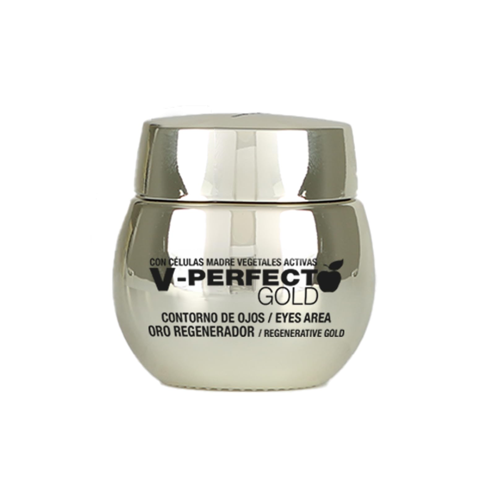 30 ml. The V-Perfect Gold line, ideal for mature or dry skin, offers a silky-smooth effect. Formulated with Regenerating Gold. Contains Collagen and Hyaluronic Acid. With Vitamins E and C. Includes active plant stem cells. V-Perfect Gold Eye Contour Cream for mature skin works by rehydrating the area and providing an anti-wrinkle effect, specially adapted to the delicate eye contour area. V-Perfect Gold Eye Contour Cream with Regenerating Gold, ideal for mature skin.30 ml. La ligne V-Perfect Gold, idéale pour les peaux matures ou sèches, offre un effet soyeux sur la peau. Formulé avec de l'Or Régénérateur. Contient du Collagène et de l'Acide Hyaluronique. Avec des Vitamines E et C. Inclut des cellules souches végétales actives. Le Contour des yeux V-Perfect Gold pour peaux matures agit en réhydratant la zone et en offrant un effet anti-rides, spécialement adapté à la délicate zone du contour des yeux. Contour des yeux à l'Or Régénérateur V-Perfect Gold, idéal pour les peaux matures.Thader Pharma Contour des yeux à l'Or Régénérateur V-Perfect Gold, idéal pour les peaux matures, 30 ml