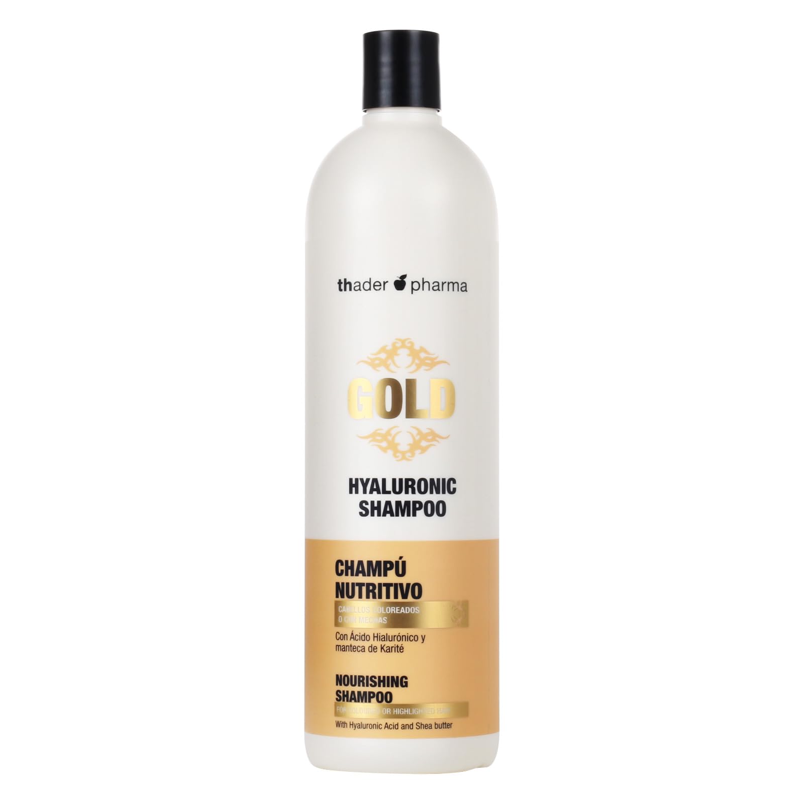 Hyaluronic Gold Nourishing Shampoo for Dyed, Dried or Damaged Hair. Nourishing shampoo. With Hyaluronic Acid and Shea Butter. Colored hair or with highlights. Replenishing, highly hydrating and nutritious shampoo. Ideal for colored hair or with highlights. Intensely repairs the hair fiber without weighing it down, providing shine and softness. INGREDIENTS Aqua (Water), Cocamidopropyl Betaine, Sodium Laureth Sulfate, Cocamide MEA, Sodium Lauryl Sulfate, Guar Hydroxypropyltrimonium Chloride, Polyquaternium-10, Panthenol, Pantolactone, Trihydroxystearin, Butyrospermum Parkii Butter, Propylene Glycol, Sodium Hyaluronate, Cocamide DEA, Glycol Cetearate, Tetrasodium EDTA, Citric Acid, Sodium Hydroxide, Sodium Chloride, Sodium Acetate, Isopropyl Alcohol, Sodium Benzoate, Methylchloroisothiazolinone, Methylisothiazolinone, Butylphenyl Methylpropional, Parfum (Fragrance) DIRECTIONS FOR USE Apply a sufficient quantity to wet hair, massage until foam is obtained and rinse with plenty of water. Repeat the operation if necessary SAFETY WARNING Avoid contact with eyes. 1000 ml. Intensely repairs the hair fiber without weighing it down, providing shine and softness. Ideal for color-treated or highlighted hair. Restorative, highly hydrating, and nourishing shampoo. Color-treated or highlighted hair. Nourishing shampoo. With Hyaluronic Acid and Shea Butter. Hyaluronic Gold Nourishing Shampoo for color-treated, dry, or damaged hair. Shampooing nutritif Hyaluronic Gold pour Cheveux teints, séchés ou endommagés. Shampooing nutritif. À l'Acide Hyaluronique et Beurre de Karité. Cheveux colorés ou avec des mèches. Shampooing reconstituant, hautement hydratant et nutritif. Idéal pour cheveux colorés ou avec des mèches. Répare intensément la fibre capillaire sans alourdir, offrant éclat et douceur. INGRÉDIENTS Aqua (Water), Cocamidopropyl Betaine, Sodium Laureth Sulfate, Cocamide MEA, Sodium Lauryl Sulfate, Guar Hydroxypropyltrimonium Chloride, Polyquaternium-10, Panthenol, Pantolactone, Trihydroxystearin, Butyrospermum Parkii Butter, Propylene Glycol, Sodium Hyaluronate, Cocamide DEA, Glycol Cetearate, Tetrasodium EDTA, Citric Acid, Sodium Hydroxyde, Sodium Chloride, Sodium Acetate, Isopropyl Alcohol, Sodium Benzoate, Methylchloroisothiazolinone, Methylisothiazolinone, Butylphenyl Methylpropional, Parfum (Fragrance) MODE D'EMPLOI Appliquer en quantité suffisante sur cheveux mouillés, masser jusqu'à l obtention d une mousse et rincer abondamment à l eau. Renouveler l opération si nécessaire AVERTISSEMENT DE SÛRETÉ Éviter le contact avec les yeux. 1000 ml. Répare intensément la fibre capillaire sans alourdir, offrant éclat et douceur. Idéal pour cheveux colorés ou avec des mèches. Shampooing reconstituant, hautement hydratant et nutritif. Cheveux colorés ou avec des mèches. Shampooing nutritif. À l'Acide Hyaluronique et Beurre de Karité. Shampooing nutritif Hyaluronic Gold pour Cheveux teints, séchés ou endommagés.