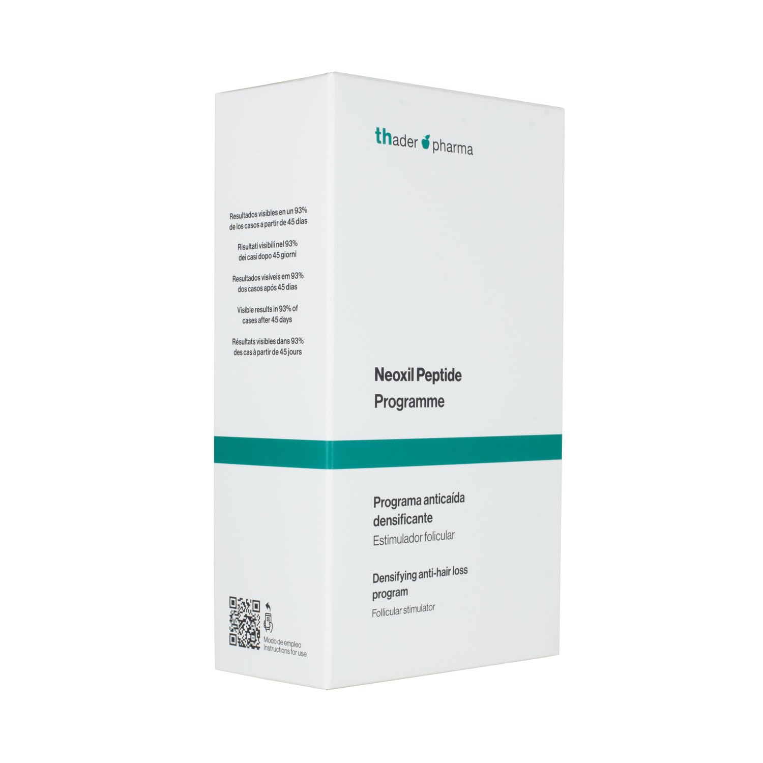 The Neoxil Peptide Complete Anti-Hair Loss Program is a comprehensive solution for combating hair loss, combining the 50ml Densifying Anti-Hair Loss Concentrate with the 300ml Anti-Hair Loss Shampoo. This advanced treatment utilizes a synergy of multipeptides, plant extracts, and carefully selected dermatological ingredients to stimulate hair follicles, increase density, and improve overall hair health. The immediate-effect concentrate works directly on the scalp to restore and regulate the disrupted hair cycle, delivering visible results in 93 of cases after 45 days. The shampoo perfectly complements the treatment and is designed for all hair types. Its gentle cleansing formula strengthens and nourishes hair from root to tip, while balancing the scalp's lipid mantle, ensuring denser, thicker, and healthier hair. Both products are medically and clinically tested, guaranteeing their efficacy and safety. This anti-hair loss pack includes: Densifying Anti-Hair Loss Concentrate (50ml). Thickening Anti-Hair Loss Shampoo (300 ml) DIRECTIONS FOR USE Anti-Hair Loss Shampoo: Wash hair, massaging gently. Leave on for a few moments and rinse with lukewarm water. Repeat. Anti-Hair Loss Concentrate: Shake before use. Apply 2 ml (approximately 60 drops) to the scalp at night. Massage gently until absorbed. Do not rinse. For severe alopecia, apply twice a day. Use regularly for best results. SAFETY WARNING Avoid contact with eyes. See moreThis anti-hair loss pack includes: Densifying Anti-Hair Loss Concentrate (50 ml) and Densifying Anti-Hair Loss Shampoo (300 ml). The shampoo perfectly complements the treatment, which is designed for all hair types. Its gentle cleansing formula strengthens and nourishes hair from root to tip, while balancing the scalp's lipid mantle, ensuring denser, thicker, and healthier hair. The concentrate, with its immediate effect, works directly on the scalp to restore and regulate the disrupted hair cycle, delivering visible results in 93 of cases after 45 days. This advanced treatment uses a synergy of multipeptides, plant extracts, and carefully selected dermatological ingredients to stimulate hair follicles, increase density, and improve overall hair health. The complete Neoxil Peptide Anti-Hair Loss Program is a comprehensive solution for combating hair loss, combining the 50 ml Densifying Anti-Hair Loss Concentrate with the 300 ml Anti-Hair Loss Shampoo.Thader Pharma Programme anti-chute des cheveux densifiant Neoxil Peptide : Lotion concentrée anti-chute 50 ml shampooing anti-chute 300 mlDESCRIPTION DU PRODUIT DESCRIPTION DU PRODUIT Le programme complet anti-chute Neoxil Peptide est une solution complète pour lutter contre la chute des cheveux, en combinant le concentré anti-chute densifiant 50 ml avec le shampooing anti-chute de 300 ml. Ce traitement avancé utilise une synergie de multipeptides, d'extraits végétaux et d'ingrédients dermatologiques soigneusement sélectionnés pour stimuler les follicules pileux, augmenter la densité et améliorer la santé générale des cheveux. Le concentré, à effet immédiat, agit directement sur le cuir chevelu pour restaurer et réguler le cycle capillaire altéré, offrant des résultats visibles dans 93 des cas à partir de 45 jours. Le shampooing complète parfaitement le traitement, conçu pour tous les types de cheveux. Sa formule lavante douce renforce et nourrit les cheveux des racines aux pointes, tout en équilibrant le manteau lipidique du cuir chevelu, garantissant des cheveux plus denses, plus épais et plus sains. Les deux produits sont testés médicalement et cliniquement, assurant leur efficacité et leur sécurité. Ce pack anti-chute comprend : concentré anti-chute densifiant (50 ml). Shampooing anti-chute densifiant (300 ml). MODE D'EMPLOI Shampooing anti-chute : lavez les cheveux en les massant doucement. Laisser agir quelques instants et rincer à l'eau tiède. Répétez l'opération. Concentré anti-chute Agiter avant utilisation. Appliquer 2 ml (environ 60 gouttes) la nuit sur le cuir chevelu. Masser doucement jusqu'à favoriser son absorption. Ne pas rincer. En cas d'alopécie sévère, appliquer deux fois par jour. Utiliser régulièrement pour de meilleurs résultats. AVERTISSEMENT DE SÉCURITÉ Éviter tout contact avec les yeux. Voir plusCe pack anti-chute comprend : concentré anti-chute densifiant (50 ml). Shampooing anti-chute densifiant (300 ml). Le shampooing complète parfaitement le traitement, conçu pour tous les types de cheveux. Sa formule lavante douce renforce et nourrit les cheveux des racines aux pointes, tout en équilibrant le manteau lipidique du cuir chevelu, garantissant des cheveux plus denses, plus épais et plus sains. Le concentré, à effet immédiat, agit directement sur le cuir chevelu pour restaurer et réguler le cycle capillaire altéré, offrant des résultats visibles dans 93 des cas à partir de 45 jours. Ce traitement avancé utilise une synergie de multipeptides, d'extraits végétaux et d'ingrédients dermatologiques soigneusement sélectionnés pour stimuler les follicules pileux, augmenter la densité et améliorer la santé générale des cheveux. Le programme complet anti-chute Neoxil Peptide est une solution complète pour lutter contre la chute des cheveux, en combinant le concentré anti-chute densifiant 50 ml avec le shampooing anti-chute de 300 ml.