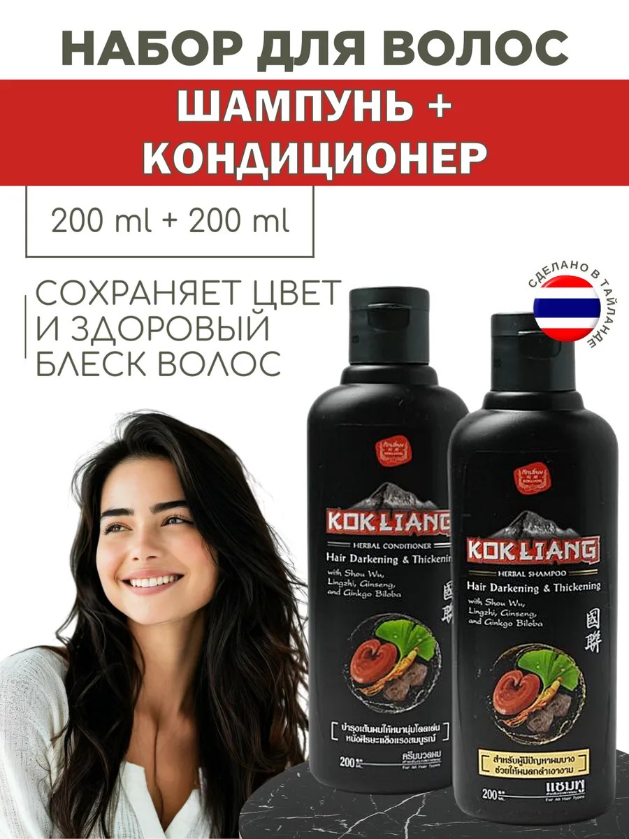 тайская косметика Шампунь и кондиционер для темных волос Kokliang 2*200 мл