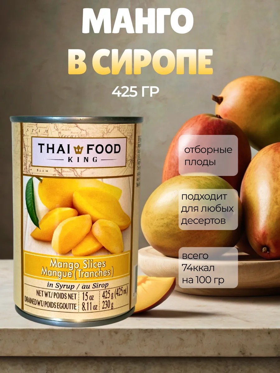 Насладитесь сочным вкусом тропического солнца с консервированным манго ломтиками в сиропе от Thai Food King! Этот продукт станет отличным дополнением к вашему завтраку, десерту или просто перекусу. Сладкие, спелые ломтики манго в ароматном сиропе сохраняют всю свою свежесть и полезные свойства. Thai Food King - это гарантия качества и вкуса, который перенесет вас в мир экзотических фруктов.