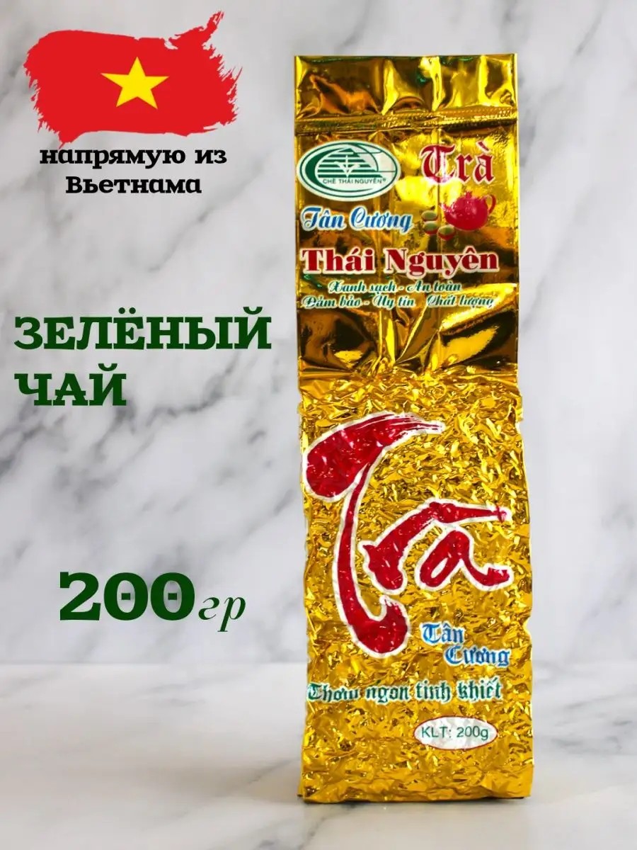 Крупнолистовой зеленый чай Thai Nguyen (высшего сорта) имеет уникальный вкус и аромат, отдающий приятной горечью, характерные для вьетнамского чая. Срок годности 2 года.Способ приготовления: вьетнамский зеленый чай известен как "чай, загнутый крючком", потому что листья сворачиваются после обжаривания. Некоторые утверждают, что верное название этого чая — "пальмоподобный", так как загнутые листочки имеют тонкое белое покрытие, как на пальмовом листе. Чай высшего сорта называется "Тхай Нгуен" (Thai Nguyen) по имени провинции, где он выращивается. В чайник емкостью в 400 мл засыпать 10 г. листьев, влить немного кипятка. Температура – 80 градусов по Цельсию. Через 3 минуты напиток готов. Еще с древности было известно, что зеленый напиток обладает рядом лечебных и профилактических свойств. Благодаря содержанию кофеина и высокому содержанию витаминов Р и С чай оказывает тонизирующее воздействие. Польза напитка для сердечно-сосудистой системы состоит в том, что он уменьшает общий уровень холестерина в крови. Повышает уровень холестерина высокой плотности («хороший холестерин»). Выводит из организма холестерин низкой плотности, отлагающийся на стенках кровеносных сосудов. Также существуют свидетельства способности чая предотвращать раковые заболевания некоторых органов. Пить напиток лучше небольшими порциями. Крепко заваренный зеленый чай, да еще сразу в большом объеме не только не снизит давление, но и повысит его из-за кофеина. Не рекомендуют его пить при запорах, а также пожилым людям на ночь. В нашем ассортименте представлен зеленый чай в фольгированной вакуумной упаковке в весе 200 граммов и 500 граммов. Купить Вьетнамский зеленый чай в нашем магазине Вы можете в любое удобное для Вас время.