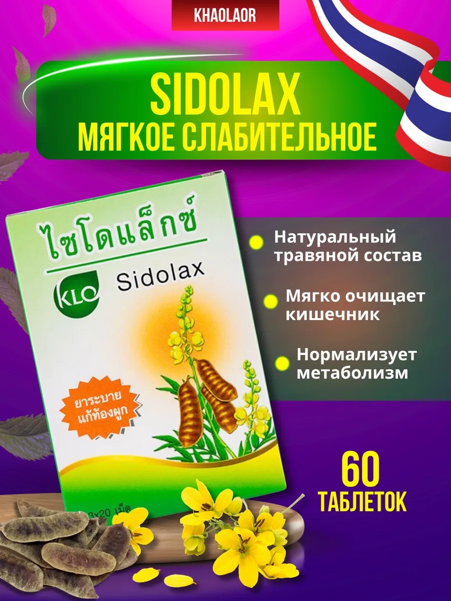 Thai laxative Sidolax 60 tablets Khaolaor is indicated for: intestinal obstruction, periodic and atonic constipation.