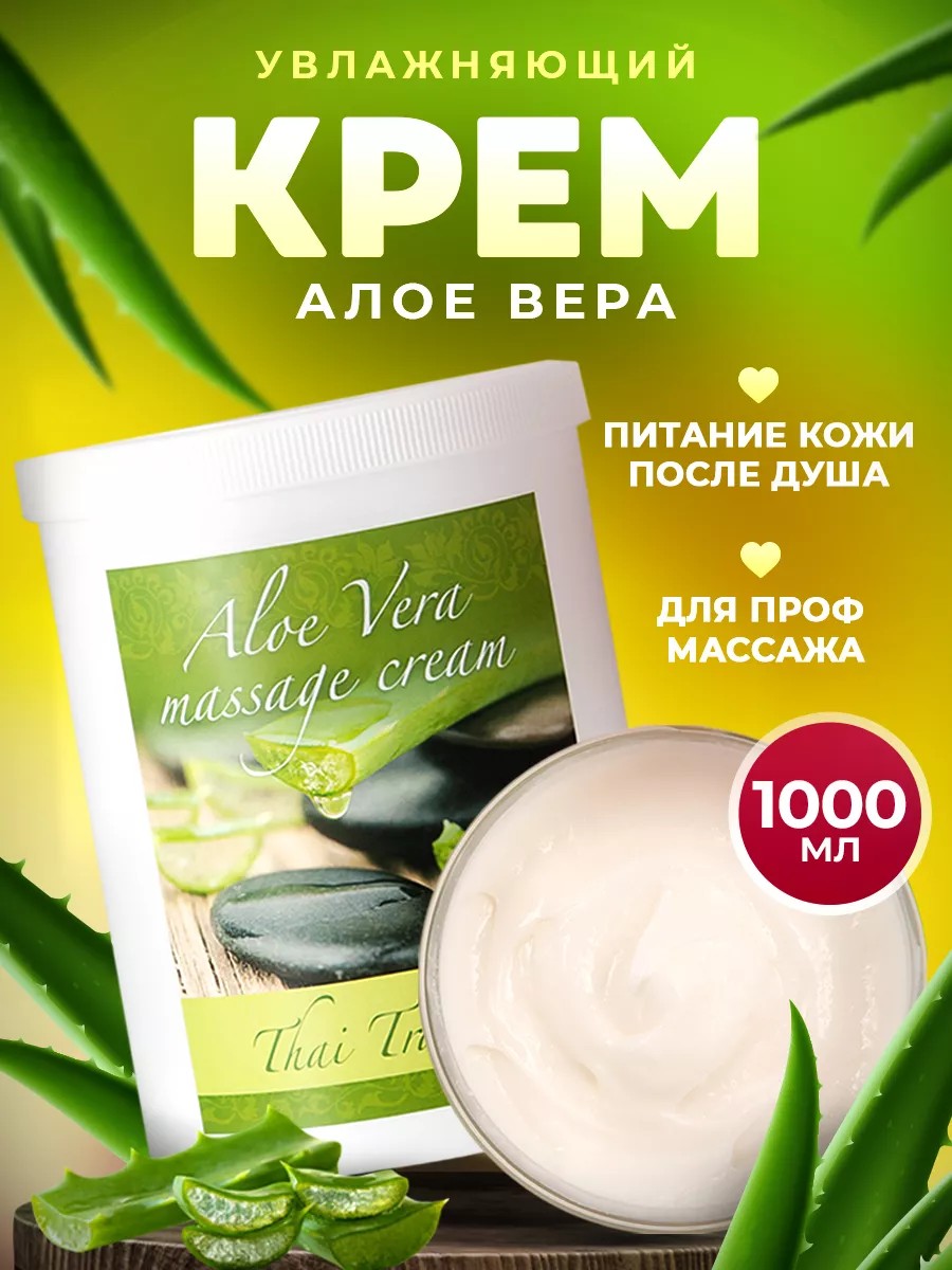 Массажный крем увлажняющий Алоэ Вера от Thai Traditions благодаря маслу Ши, жожоба и экстракту алоэ восстанавливает гидробаланс и сохраняет кожу увлажненной в течение всего дня. Текстура массажного крема похожа на лосьон для тела. Она равномерно впитывается, успокаивает и освежает кожу, не оставляя пятен и жирной пленки. Крем для массажа предназначен как для домашнего ухода кожей тела и самомассажа дома, так и для профессионального применения массажистами в SPA и салоне красоты. Эффективен в качестве средства для массажа проблемных зон, таких как живот, бедра, ягодицы, помогает от растяжек после беременности. Крем имеет не густую, легкую текстуру, обеспечивает комфортное скольжение рук во время массажа и быстро впитывается по окончании процедуры. Массажный крем для тела может выступать не только как средство для массажа, но и как крем для увлажнения кожи после душа. Крем для тела выпускается ароматизированным с разными парфюмерными ароматами: шоколадным, ванильным кокосовым, манго, рисовым, фруктовым, цветочным, свежим, цитрусовым. Крем представлен в большом объеме - 1000 мл в банке с контролем первого вскрытия. Подходит для различных видов массажа: ручного, аппаратного, гуаша, с массажером, вакуумного, баночного масажа, массажа с щеткой. Крем подходит для разных типов кожи: для сухой кожи, для нормальной кожи, для жирной кожи, для комбинированной кожи, для поврежденной кожи. Этот крем увлажняющий, подтягивающий, питательный, антицеллюлитный, против рубцов и растяжек, от целлюлита (целюлита), для похудения, дренажный, омолаживающий от морщин, для упругости, от растяжек беременных, антивозрастной, расслабляющий, успокаивающий. Он подойдет для: ухода за телом, профессионального массажа, доя маникюра и педикюра.Как использовать крем: нанесите средство на кожу и массируйте круговыми движениями.