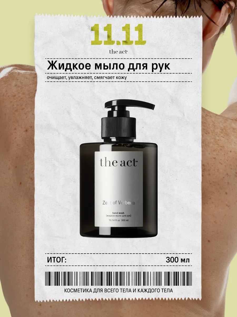 Больше не нужно выбирать между надежной защитой от бактерий и уходом за кожей рук. Новое жидкое мыло The Act c ароматом вербены и цитрусовыми нотками сочетает в себе мощные природные антисептики и уход за руками с эффектом увлажнения и заживления микротрещинок.