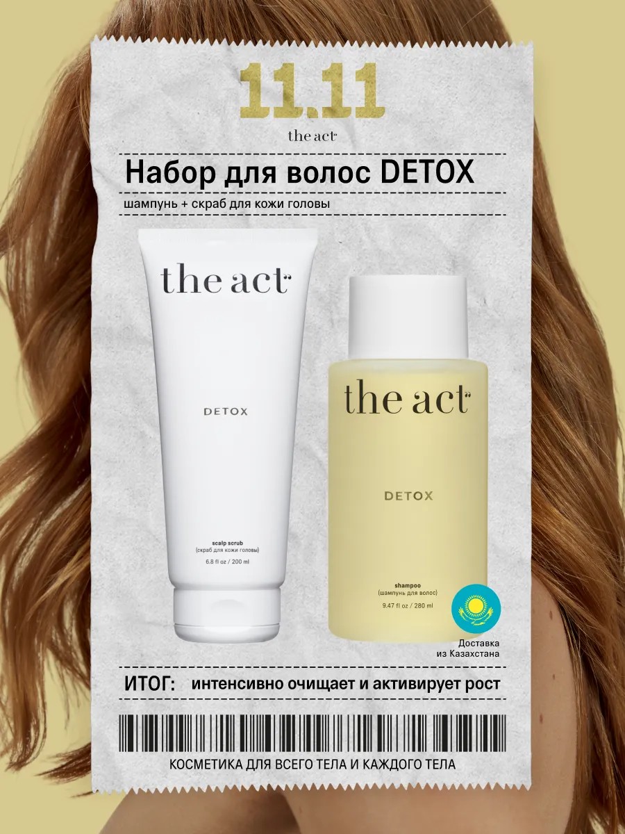 Добавьте набор The Act Detox в свою бьюти-рутину и подарите своим волосам обновлённую энергию для здорового роста, блеска и гладкости. Рекомендуем применять с 14 лет.