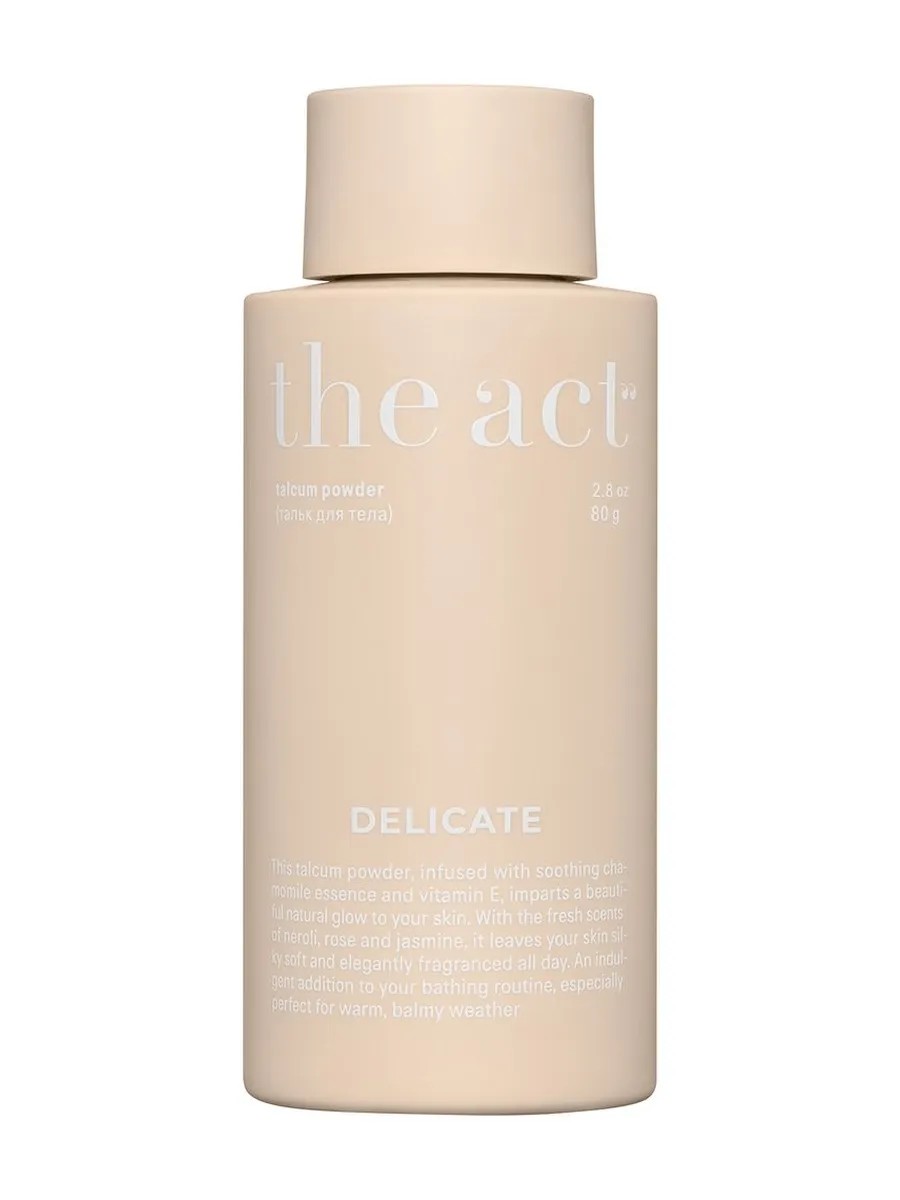 Парфюмированный тальк The Act поддерживает естественную красоту и здоровье кожи, бережно заботится о коже.