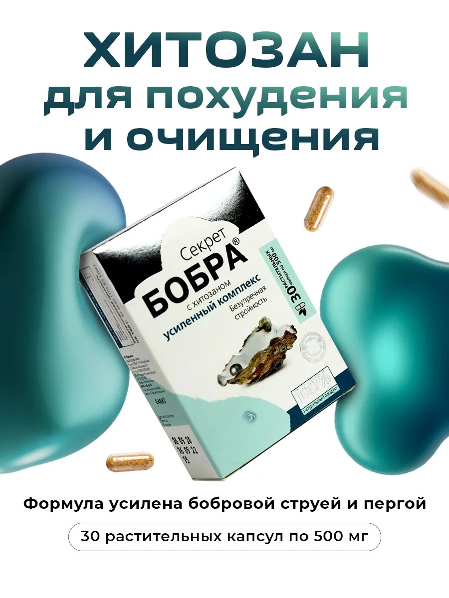 Секрет бобра с хитозаном безупречная стройность в капсулах это комплекс природных компонентов – уникального секрета "бобровая струя" (мускус, кастореум) железы речного бобра, хитозана и перги пчелиной, направленный на устранение лишнего веса, целлюлита, жировых отложений, улучшение обменных процессов, усвоения кальция из пищевых продуктов, а также на очищение крови и пищеварительной системы.