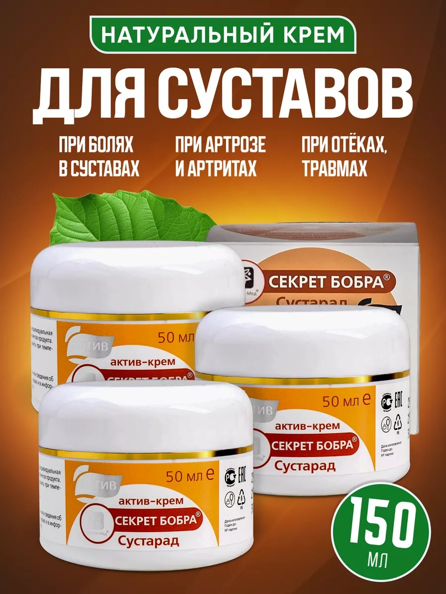 Натуральный актив-крем «Секрет бобра» СУСТАРАД – природный комплекс проникающего действия, оказывающий интенсивное противовоспалительное, ранозаживляющее, болеутоляющее, регенерирующее и тонизирующее действие. Крем не содержит искусственных и химических веществ, уникальная нативная формула крема оказывает усиленное комплексное воздействие на причину боли и сопутствующие осложнения вокруг воспаленной области и на поверхности кожи.