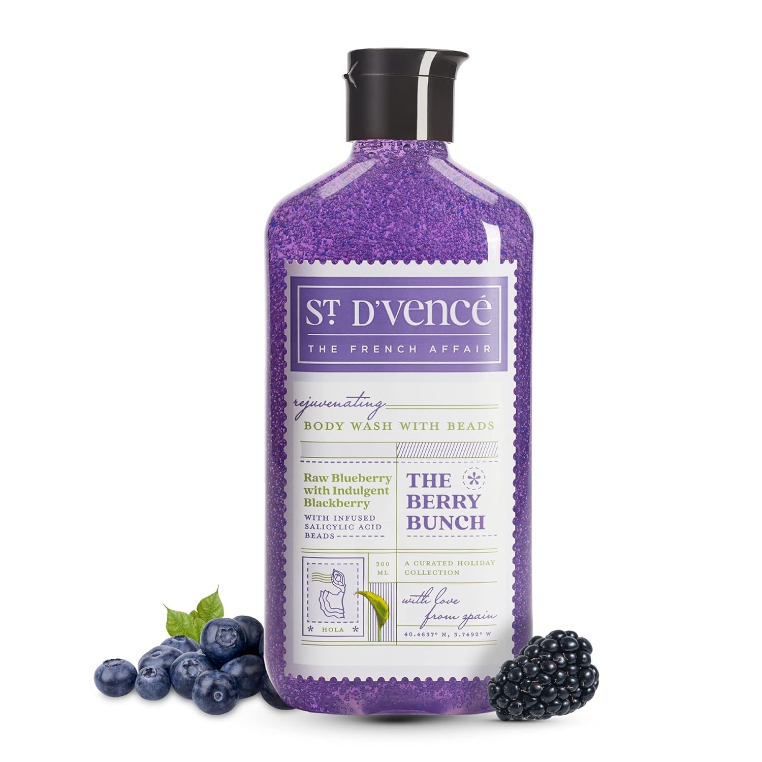 The Berry Bunch Body Wash with Blueberry, Blackberry and Salicylic Acid Beads (300ml) | SLS and Parabens Free | Fights Body & Back Acne | Rejuvenating and Deep Cleansing Shower Gel