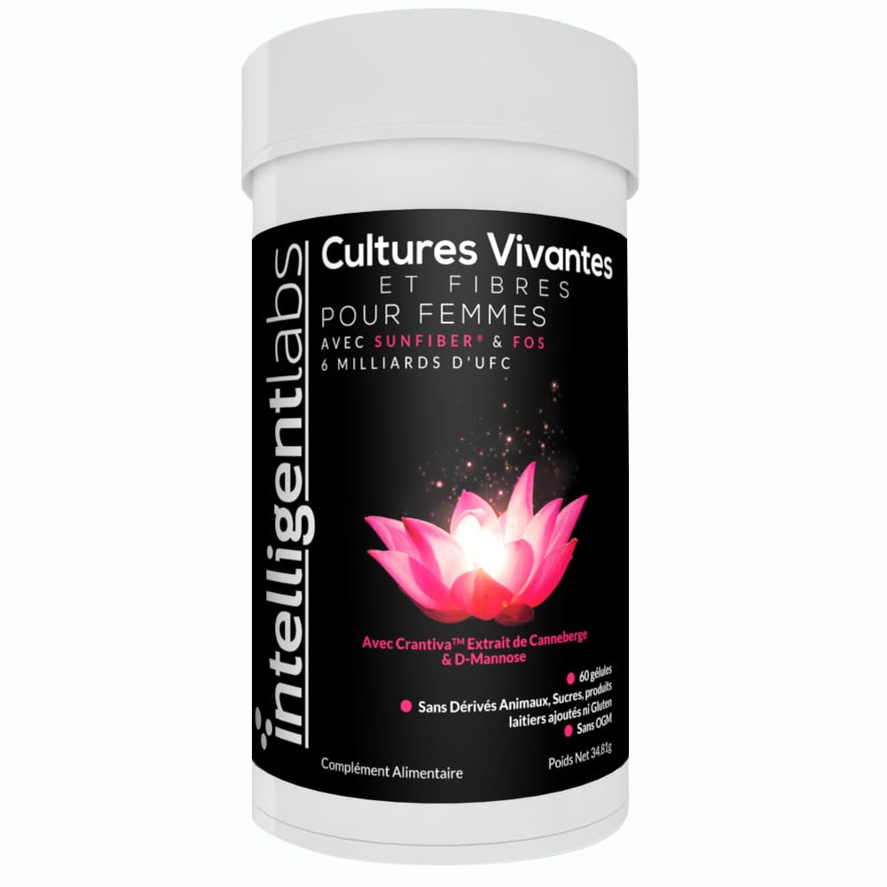 ? Your health is our priority ? Independent third-party testing, available upon request, shows our products are pure, safe, and potent. ? One easy-to-swallow capsule per day ? Our live cultures for women are very easy to take and store. They do not require refrigeration and can be stored at room temperature. ? Patented live culture strains and delivery system ? All our strains are patented and sourced from DuPont Danisco. These are specific strains that are resistant to acid and bile to ensure they reach your gut. To ensure the strength of 6 billion CFUs until expiration, we use Activ-Polymer bottles and an Oxyfree desiccant that reduces oxygen levels in the bottle to only 0.01 . ? Be strong, healthy, and happy ? Our supplement is the only live culture supplement of the feminine flora to include two forms of fiber for 10x more effectiveness - FOS and Sunfiber. Fiber is the food of live cultures. Without fiber, live cultures die, so it is vital to always take them together. ? Strengthen your digestive, vaginal, and urinary health ? No need to buy separate supplements. Each capsule contains an effective dose of patented live culture strains, Crantiva cranberry extract (rich in antioxidants and proanthocyanidins), concentrated D-mannose, and fiber in one supplement.? Votre santé est notre priorité ? Les tests indépendants effectués par des tiers, disponibles sur demande, montrent que nos produits sont purs, sûrs et puissants. ? Une gélule facile à avaler par jour ? Nos cultures vivantes pour femmes sont très faciles à prendre et à conserver. Elles ne nécessitent aucune réfrigération et peuvent être stockées à température ambiante. ? Souches de cultures vivantes et système d'administration brevetés ? Toutes nos souches sont brevetées et proviennent de DuPont Danisco. Ce sont des souches spécifiques résistantes à l'acide et à la bile pour s'assurer qu'elles atteignent votre intestin. Pour garantir la force de 6 milliards d'UFC jusqu'à l'expiration, nous utilisons des bouteilles Activ-Polymer et un déshydratant Oxyfree qui réduit les niveaux d'oxygène dans la bouteille à seulement 0,01 . ? Soyez fort, en bonne santé et heureux ? Notre supplément est le seul supplément de cultures vivantes de la flore féminine à inclure deux formes de fibres pour 10x plus d'efficacité - FOS et Sunfiber. Les fibres sont les aliments des cultures vivantes. Sans fibres, les cultures vivantes meurent donc il est vital de toujours les prendre ensemble. ? Renforcez votre santé digestive, vaginale et urinaire ? Pas besoin d'acheter des suppléments séparés. Chaque gélule contient une dose efficace de souches de cultures vivantes brevetées, d'extrait de canneberge Crantiva (riche en antioxydants et en proanthocyanidines), de D-mannose concentré et de fibres en un seul supplément.