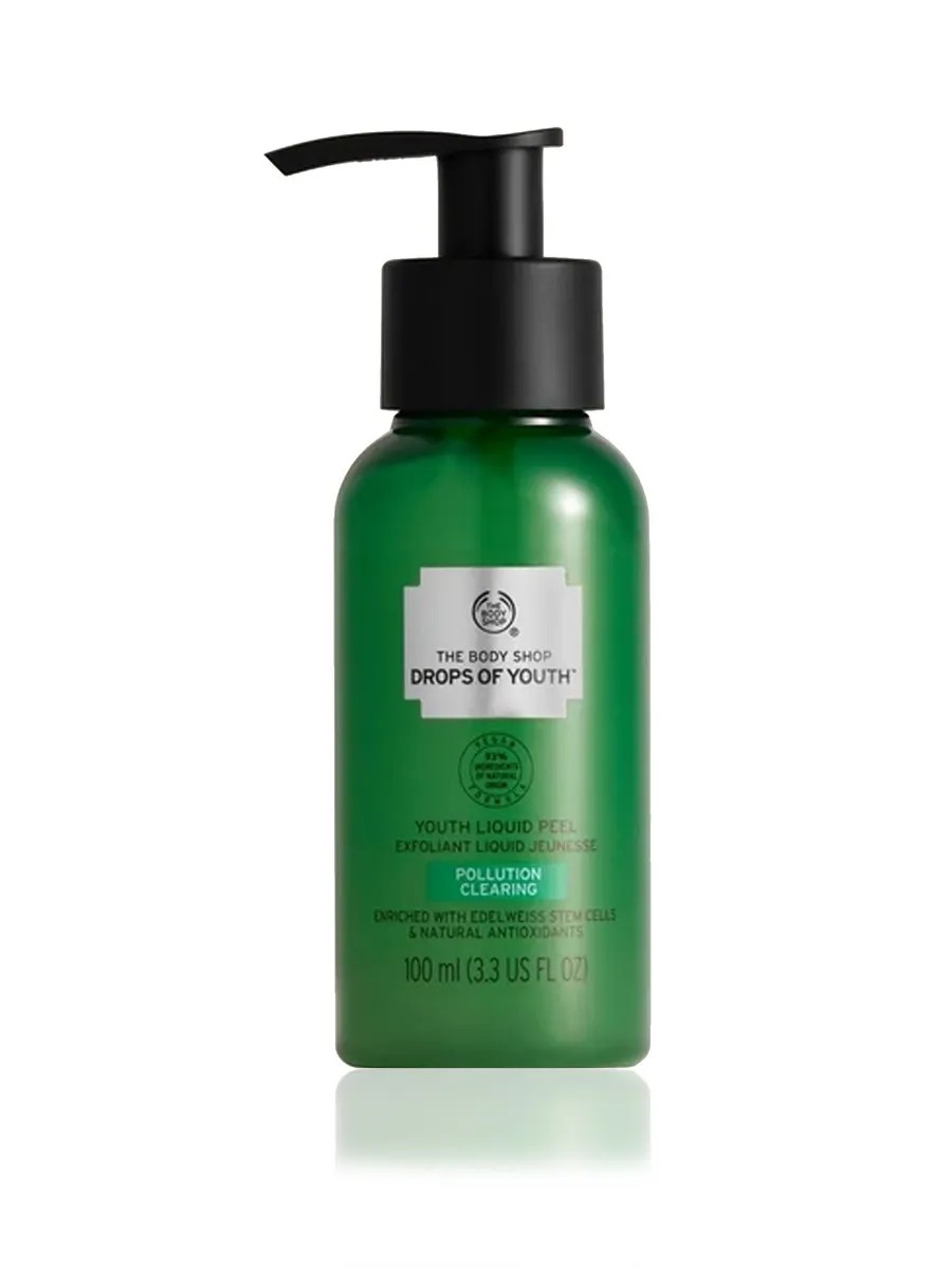 Drops of Youth Liquid Peel Facial Gel-Roll. The main purpose of a liquid peel is to exfoliate dead skin and impurities from your face. While it doesn't sound very appealing, I can confirm that it feels extremely good, and it leaves your face squeaky clean! The Drops of Youth line at The Body Shop claims to cleanse your skin of all impurities and daily pollutants to promote fresher, healthier-looking skin. In terms of application, this product is quite simple. All you need to do is squeeze 2-3 drops onto your fingertips and then massage them into a dry, cleansed face for about 20 seconds. After you do this, you'll notice the product begin to produce small clumps of dead skin on the surface of your face—use a damp cloth to wipe them off, and voila! It's that simple.