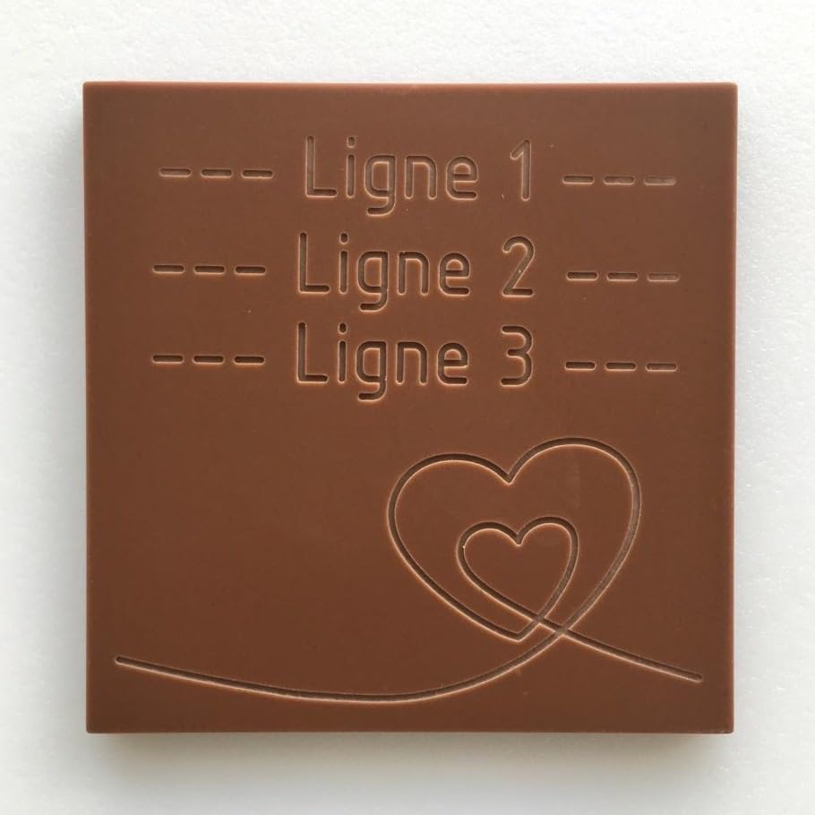 A moment to celebrate? A birthday to celebrate? A declaration of love to make? Or simply want to please? Every day offers a unique opportunity to share a Chewable Card! What is a Chewable Card? Imagine a delicious 80g chocolate bar, top of the range, pure cocoa butter. Each tablet is made and engraved with love and passion in our artisanal workshop, located in La Roche-sur-Yon in Vendée. Our unique engraving process allows you to offer a tablet for all occasions. Whether it is a touching message, a delicate pattern or a fun drawing, our team of artisans uses all their know-how to transform chocolate into a true work of edible and 100 natural art. We are proud to offer you chocolates from sustainable agriculture. In fact, 100 of the cocoa beans we use come from crops that respect the environment and producers. So, every bite of our chocolates is not only delicious, but also ethical and responsible. Why choose a Chewable Card? Quality: Our chocolates are made from the best cocoa beans, guaranteeing you an unforgettable taste experience. Craftsmanship: Each tablet is the result of meticulous work carried out in our Vendée workshop, guaranteeing an authentic and handmade product. Sustainability: By choosing our chocolates, you support sustainable and fair agriculture. Offer a Chewable Card for all occasions: Birthdays: Make this event a memorable moment with a tablet engraved especially for the lucky one. Weddings and engagements: Personalize your guest gifts with thank you messages or symbolic designs. Valentine's Day: Declare your love with a declaration engraved on high quality chocolate. Births: Celebrate the arrival of a newborn with a sweet welcome message or congratulate new parents. Just for fun: Because there's never a bad time to offer a little sweetness! Want to share a Chewable Card? Tablet size 10x10cm Weight 80g Arranged in a pretty cardboard box 100 recyclable Milk chocolate flavor INGREDIENTS chocolateWant to share a Carte à Croquer? Tablet size 10x10cm Weight 80g Arranged in a pretty 100 recyclable cardboard box Choice of: milk chocolate or dark chocolate 73 cocoa or white chocolate. Offer a Carte à Croquer for all occasions: Birthdays: Make this event a memorable moment with a tablet engraved especially for the lucky one. Weddings and engagements: Personalize your guest gifts with thank you messages or symbolic designs. Valentine's Day: Declare your love with a declaration engraved on high-quality chocolate. Births: Celebrate the arrival of a newborn with a sweet welcome message or congratulate the new parents. Just for fun: Because there's never a bad time to offer a little sweetness!. Why choose a Carte à Croquer? Quality: Our chocolates are made from the finest cocoa beans, guaranteeing you an unforgettable taste experience. Craftsmanship: Each bar is the result of meticulous work carried out in our Vendée workshop, guaranteeing an authentic and handmade product. Sustainability: By choosing our chocolates, you support sustainable and fair agriculture. We are proud to offer you chocolates from sustainable agriculture. Indeed, 100 of the cocoa beans we use come from environmentally friendly crops and producers. This means that every bite of our chocolates is not only delicious, but also ethical and responsible. Our unique engraving process allows you to offer a bar for all occasions. Whether it's a touching message, a delicate pattern, or a fun design, our team of artisans uses all their know-how to transform chocolate into a true edible and 100 natural work of art. What is a Crunchable Card? Imagine a delicious 80g chocolate bar, high-end, pure cocoa butter. Each bar is made and engraved WITH YOUR TEXT, with love and passion in our artisanal workshop, located in La Roche-sur-Yon in Vendée. To personalize your crunchy card it's simple. just click on the yellow button "PERSONALIZE NOW" and enter your text. You will have a preview control. A moment to celebrate? A birthday to celebrate? A declaration of love to make? Or simply want to please? Every day offers a unique opportunity to share a crunchy card! Personalize your chocolate card with YOUR TEXT. Un moment à célébrer ? Un anniversaire à fêter ? Une déclaration d'amour à faire ? Ou tout simplement envie de faire plaisir ? Chaque jour offre une occasion unique de partager une Carte à Croquer ! Qu'est-ce qu'une Carte à Croquer ? Imaginez une délicieuse tablette de chocolat de 80g, haut de gamme, pur beurre de cacao. Chaque tablette est fabriquée et gravée avec amour et passion dans notre atelier artisanal, situé à La Roche-sur-Yon en Vendée. Notre procédé de gravure unique vous permet d'offrir une tablette pour toutes les occasions. Que ce soit un message touchant, un motif délicat ou un dessin amusant, notre équipe d'artisans met tout son savoir-faire pour transformer le chocolat en une véritable œuvre d'art comestible et 100 naturelle. Nous sommes fiers de vous offrir des chocolats issus d'une agriculture durable. En effet, 100 des fèves de cacao que nous utilisons proviennent de cultures respectueuses de l'environnement et des producteurs. Ainsi, chaque bouchée de nos chocolats est non seulement délicieuse, mais aussi éthique et responsable. Pourquoi choisir une Carte à Croquer ? Qualité : Nos chocolats sont fabriqués à partir des meilleures fèves de cacao, vous garantissant une expérience gustative inoubliable. Artisanat : Chaque tablette est le fruit d'un travail minutieux réalisé dans notre atelier vendéen, garantissant un produit authentique et fait main. Durabilité : En choisissant nos chocolats, vous soutenez une agriculture durable et équitable. Offrez une Carte à Croquer pour toutes les occasions : Anniversaires : Faites de cet événement un moment mémorable avec une tablette gravée spécialement pour l'heureux(se) élu(e). Mariages et fiançailles : Personnalisez vos cadeaux d'invités avec des messages de remerciement ou des motifs symboliques. Saint-Valentin : D