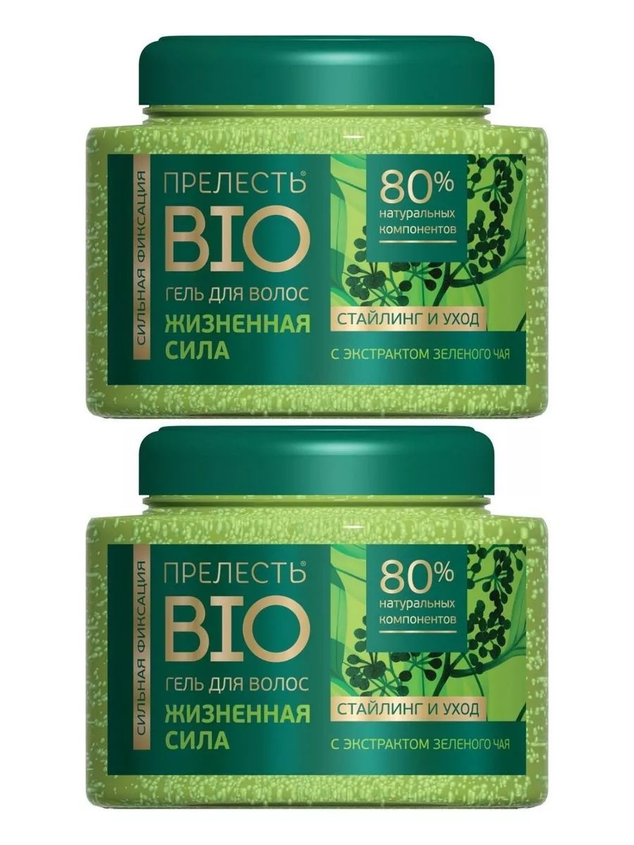 Прелесть Био гель для укладки Жизненная сила с экстрактом зеленого чая 2 шт. по 250 мл. Гель для волос содержит 95% натуральных компонентов в составе. Натуральные экстракты способствуют укреплению структуры волос, наполняют волосы жизненной силой и защищают их от воздействия окружающей среды. Гель великолепно фиксирует укладку и надежно сохраняет ее в течение всего дня. Идеальный стайлинг без склеивания и утяжеления - это возможно. Сильные, красивые и здоровые волосы с Прелесть Био - это натуральные компоненты, которые максимально бережно относятся к волосам. Гель полностью смывается с волос.