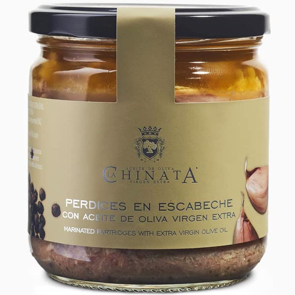 The boning in Escabeche with extra virgin olive oil from La Chinata is produced by hand without coloring or preservatives according to the typical stain recipe. It is the most practical and easiest way to enjoy this wonderful dish, without having to bundle it. So you can prepare a gourmet salad by opening just one bottle. The perdices are thawed by hand to guarantee their quality and provide a great first bite experience. They have a perfect taste, texture and cooking point to enjoy at room temperature in salads and cold dishes. The recipe contains basic ingredients such as wine vinegar, olive oil virus extra, purple garlic and various natural spicesAvove La Chinata 300 g De in Escabeche uitbenen met extra virgin olijfolie uit La Chinata worden met handwerk zonder kleur- en conserveringsmiddelen volgens het typische vlekrecept geproduceerd. Het is de meest praktische en eenvoudigste manier om van dit prachtige gerecht te genieten, zonder het te hoeven bundelen. Zo kun je een gastronomische salade bereiden door slechts één fles te openen. De perdices worden met de hand ontdooid om hun kwaliteit te garanderen en een geweldige ervaring bij de eerste beet te bieden. Ze hebben een perfecte smaak, textuur en een perfect kookpunt om te genieten bij kamertemperatuur in salades en koude gerechten. Het recept bevat basisingrediënten zoals wijnazijn, olijfolie virussenextra, paarse knoflook en verschillende natuurlijke specerijen