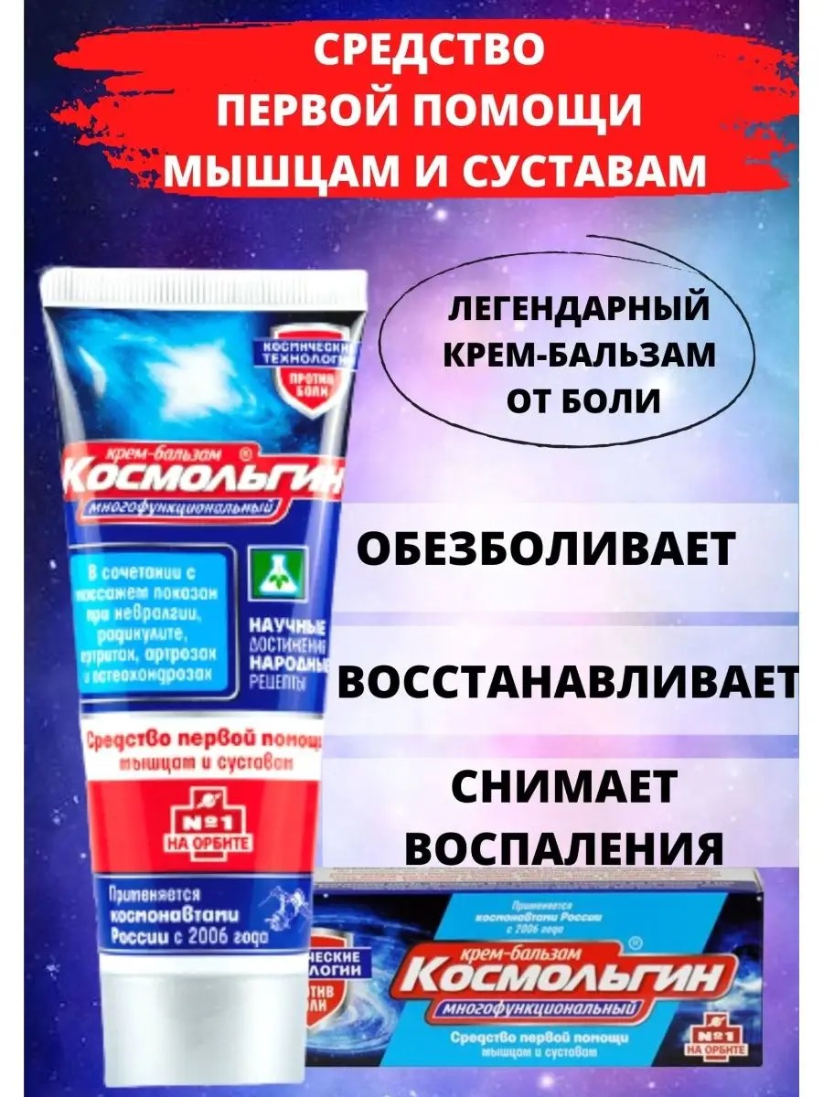 Крем Космольгин от боли в мышцах, суставах и во всем теле. Эту эффективную мазь можно использовать от боли в спине или пояснице, в локтях или коленях, плечах и позвоночника. Снимает боль при таких заболеваниях как артрит и артроз, а так же остеохондроз и радикулит, растяжение связок и мышц, а также ревматизм .