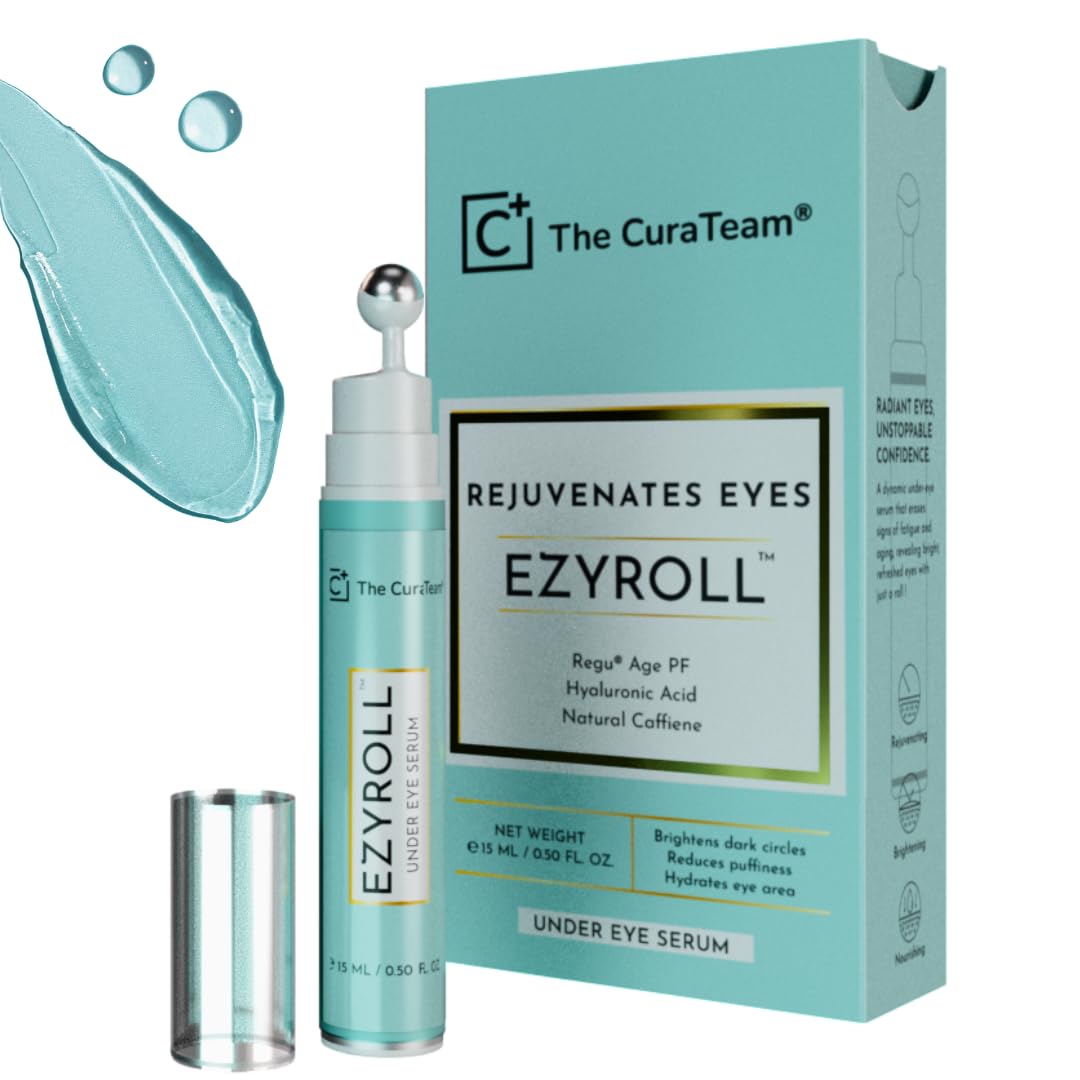 The CuraTeam EZYROLL Under Eye Roll On Serum with Hyaluronic Acid Natural Caffeine | Cooling Massage Roller to Reduce Dark Circles Puffiness & Fine Lines | For All Skin Types of Men & Women|15ml