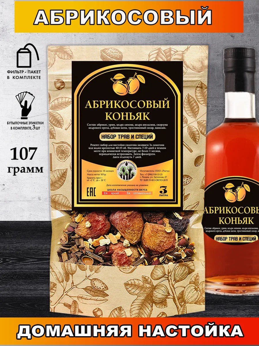 КомплектацияНастойка для самогона "Абрикосовая" - 1шт; фильтр-пакет-1шт; Наклейки -3шт