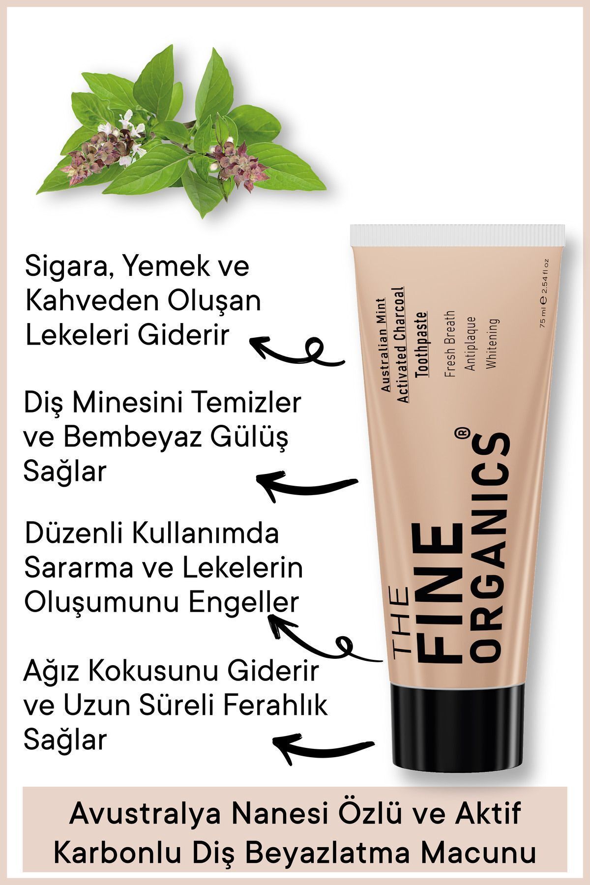 THE FINE ORGANICS Australian Mint Extract Whitening Activated Charcoal Toothpaste 75ml