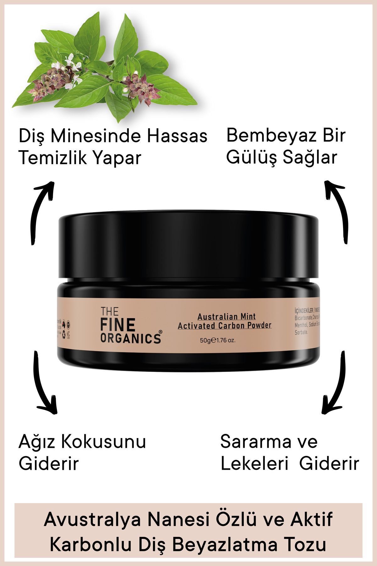 THE FINE ORGANICS Mint & Activated Carbon Teeth Whitening Powder 50g
