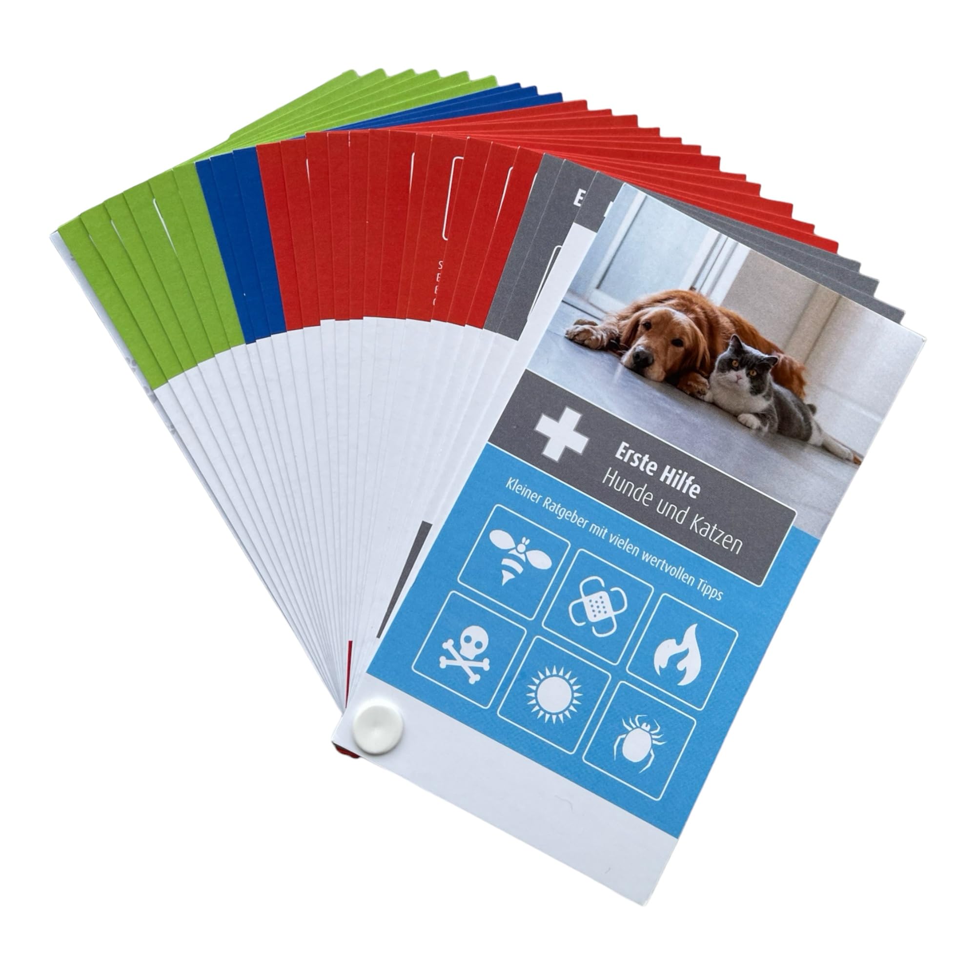 Prepare to support your furry companion in emergency situations with our first aid subject for dogs and cats.Our compact set was specially developed to contain all essential elements for first aid for your four-legged friends, in a practical smartphone format that fits perfectly in your pocket or handbag.In an emergency, time is of crucial importance.Our subject is designed in such a way that you can immediately access it, regardless of whether your dog has been injured or your cat suddenly gets sick.With this subject you have everything you need to take quick and effective measures.Regardless of whether it is small cuts, scratches or emergencies, with this set you are prepared for almost everything.We know how much you love your furry friends, and that's why we have made sure that our subjects offer everything you need in an emergency situation.From dog owners to cat lovers - this set is a must for every pet owner.Do you always have everything your beloved friends need! Instructions Not suitable for children under 3 years!Choking risk due to the swallowable small parts!comprehensive emergency cover: 25 pages for a variety of dog and cat emergencies.Clear step-by-step instructions: precise instructions for effective first aid in various situations.Veterinary -specific recommendations: specific advice that meets the needs of dogs and cats.Handy smartphone format: compact and always at hand for quick reactions on the go.Informative overview: Each page offers a clear overview of emergencies for quick identification.Color -encoded sides and graphics: quick orientation through color codes and clear graphics.Water and tear-resistant: hard-wearing material for long-term use and resistance.Life -saving tips: The subject gives life -saving tips and hints to maximize your pet's chances of survival in emergency situations.Emergency numbers and contacts: Important emergency numbers and veterinarians are noted in the subject so that you will receive professional help immediately if necessary.Bereiten Sie sich darauf vor, Ihren pelzigen Gefährten in Notfallsituationen zu unterstützen, mit unserem Erste-Hilfe-Fächer für Hunde und Katzen. Unser kompaktes Set wurde speziell entwickelt, um alle essenziellen Elemente für die Erste Hilfe für Ihre vierbeinigen Freunde zu enthalten, in einem praktischen Smartphone-Format, das perfekt in Ihre Tasche oder Handtasche passt. In einem Notfall ist Zeit von entscheidender Bedeutung. Unser Fächer ist so konzipiert, dass Sie sofort darauf zugreifen können, egal ob Ihr Hund sich verletzt hat oder Ihre Katze plötzlich krank wird. Mit diesem Fächer haben Sie alles, was Sie brauchen, um schnelle und effektive Maßnahmen zu ergreifen. Egal ob es sich um kleine Schnitte, Kratzer oder Notfälle handelt, mit diesem Set sind Sie für fast alles gerüstet. Wir wissen, wie sehr Sie Ihre pelzigen Freunde lieben, und deshalb haben wir sicher gestellt, dass unser Fächer alles bietet, was sie in einer Notfallsituation benötigen. Von Hundebesitzern bis zu Katzenliebhabern - dieses Set ist ein Muss für jeden Haustierbesitzer. Haben Sie alles, was Ihre geliebten Freunde benötigen, immer griffbereit! GEBRAUCHSANWEISUNG Nicht für Kinder unter 3 Jahren geeignet ! Erstickungsgefahr aufgrund verschluckbarer kleinteile !Umfassende Notfallabdeckung: 25 Seiten für eine Vielzahl von Hunde- und Katzennotfällen. Klare Schritt-für-Schritt-Anweisungen: Präzise Anleitungen für effektive Erste Hilfe in diversen Situationen. Tierarztspezifische Empfehlungen: Spezifische Ratschläge, die den Bedürfnissen von Hunden und Katzen gerecht werden. Handliches Smartphone-Format: Kompakt und immer griffbereit für schnelle Reaktionen unterwegs. Informativer Überblick: Jede Seite bietet einen klaren Überblick über Notfälle für eine schnelle Identifikation. Farbkodierte Seiten und Grafiken: Schnelle Orientierung durch Farbcodes und anschauliche Grafiken. Wasser- und reißfest: Strapazierfähiges Material für langfristige Nutzung und Widerstandsfähigkeit. Lebensrettende Tipps: Der Fächer gibt lebensrettende Tipps und Hinweise, um die Überlebenschancen deines Haustiers in Notsituationen zu maximieren. Notrufnummern und Kontakte: Wichtige Notrufnummern und Tierärzte sind im Fächer vermerkt, damit du bei Bedarf sofort professionelle Hilfe erhältst.
