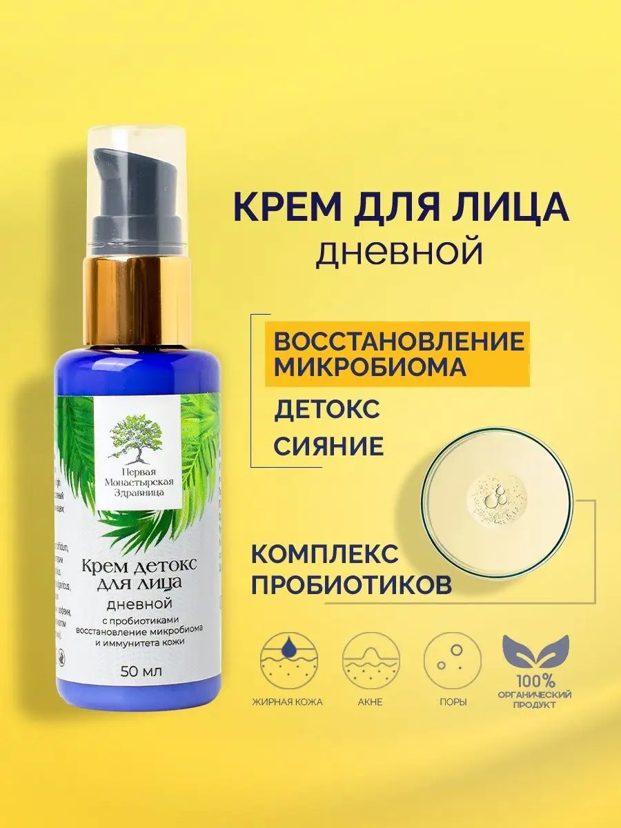 КомплектацияДНЕВНОЙ КРЕМ ДЕТОКС ДЛЯ ЛИЦА С ПРОБИОТИКАМИ 50мл 1шт