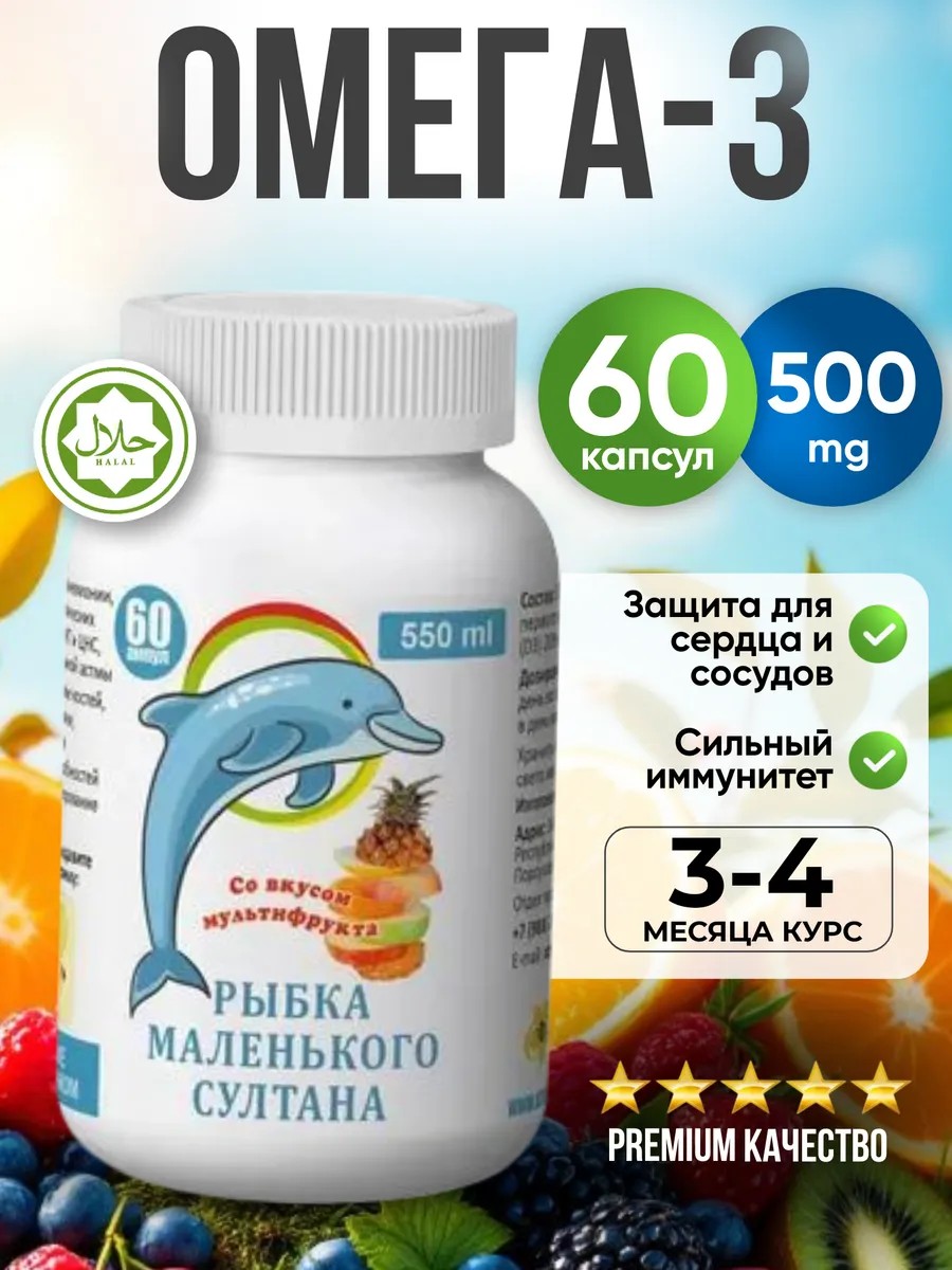 «Рыбий (Рыбный) Жир повышает иммунитет ребёнка, защищает его сердце и мозг, улучшает память и зрение, положительно влияет на глубокий и здоровый сон, помогает в профилактике простудных заболеваний и ГРИППа, предотвращает развитие рахита, делает волосы и ногти крепкими и здоровыми...» ПРОТИВОПОКАЗАНИЯ: нарушение углеводного обмена, включая сахарный диабет первого и второго типов (инсулинозависимые формы), хронические заболевания почек, индивидуальная непереносимость компонентов продукта. Состав продукта: 100% нежный Рыбный Жир ценных благородных пород североморской океанической рыбы высшего качества без запаха рыбы с содержанием ПНЖК класса Омега-3 не менее 20% с добавлением витамина Е.